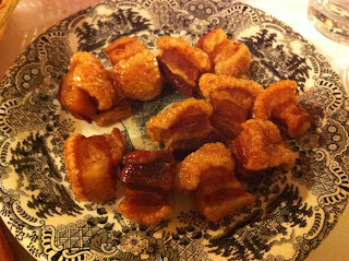 Con este manjar de millones de calorías nos sorprendieron porque no los habíamos pedido, ya que con los entrantes que había, lo de volver a Zamora andando era cuestión de frío y ganas. Torreznos fritos muy ricos, tocamos a uno por persona gracias a Dios.