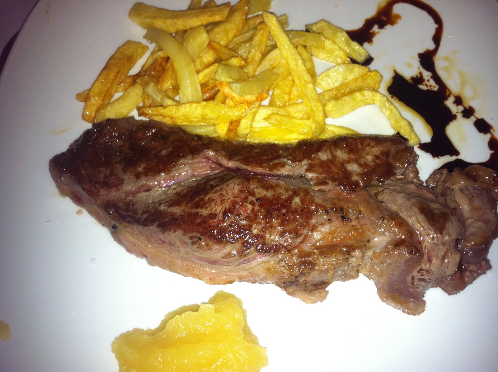 Mi opción fue solomillo, bien hecho, sin condimentos como a mi me gusta, muy bien. Lo que me gustó fue la presentación en una losa de pizarra.
