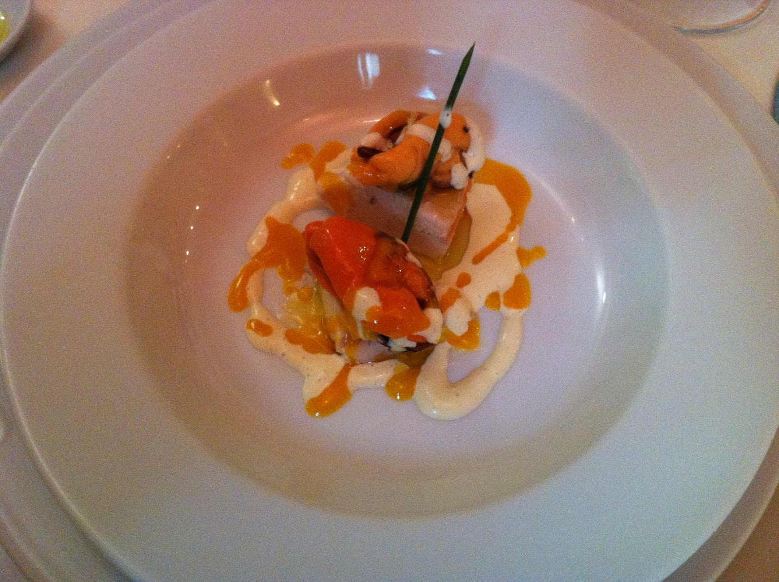 La verdad que no nos estrujamos mucho el coco a la hora de pedir, íbamos con hambre, por lo que los entrantes fueron sencillos, huevos con jamón (correctos), croquetas de jamón (muy buenas aunque acompañadas con escarola sin aliñar...no entiendo esto), y huevos con foie (jugosos)
