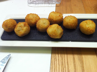 Como no, para ir abriendo boca, croquetas de queso azul Fourme D'ambert, buenas pero con un gran fallo para mi, venían templaditas...