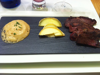 Creo que es una de las mejores combinaciones, a la cual añadiría un buen vino. Pedimos un Marques de Riscal 2006 que a la gente le emocionó mucho y a mi me pareció de lo más simple, y no sé de vinos.