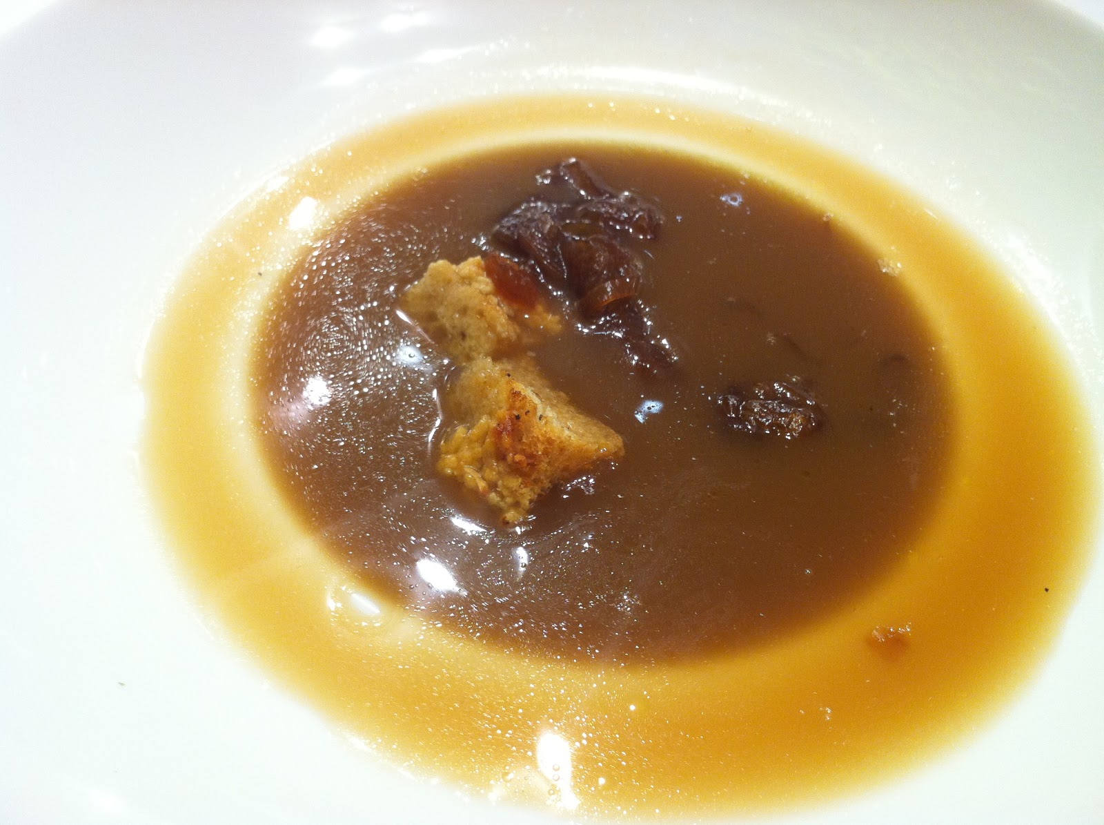 Comenzando con los segundos una sopa de cebolla con queso de Fiore Sardo, de lo más floja. Una auténtica sopa de cebolla no te la pueden traer en una mini-jarra para que te la sirvas en el plato donde viene la cebolla, el queso y el pan. ¿Dónde está la parte gratinada con queso?