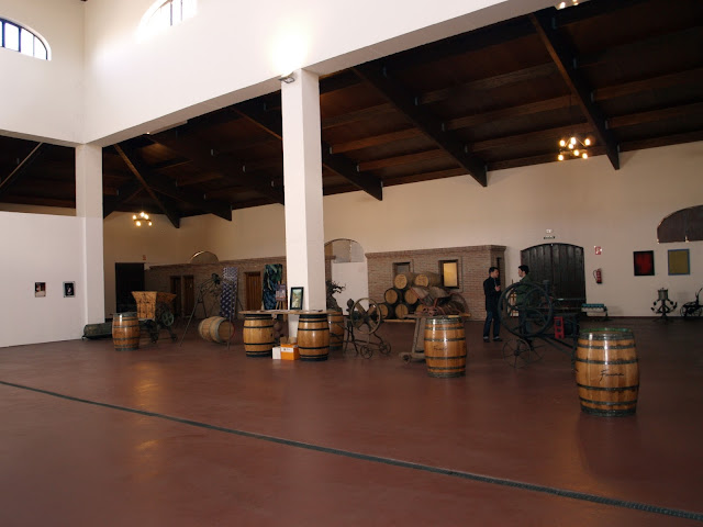 Pasamos a la cara bonita de las bodegas, donde se reunen cuadros que salen a concurso para el etiquetado del vino Primero, hasta maquinaria antiquísima con telas de araña incluidas que se usaba para la producción de vinos.