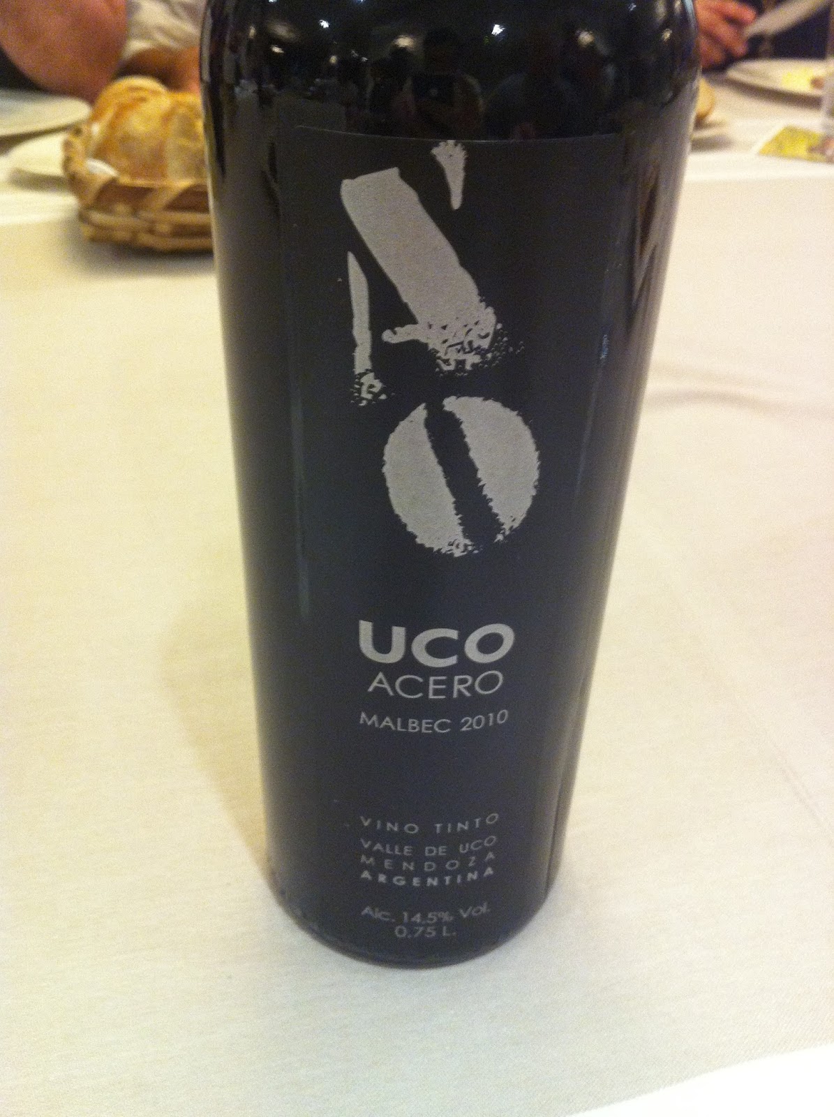 Hemos hablado de comida, pero de bebida tomamos un vino joven de Argentina, concretamente de Mendoza, un Uco Acero '10 malbec. Muy bueno y que lógicamente iba muy bien con la comida.