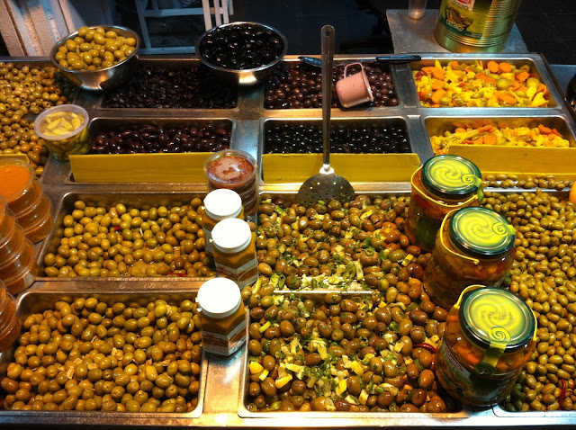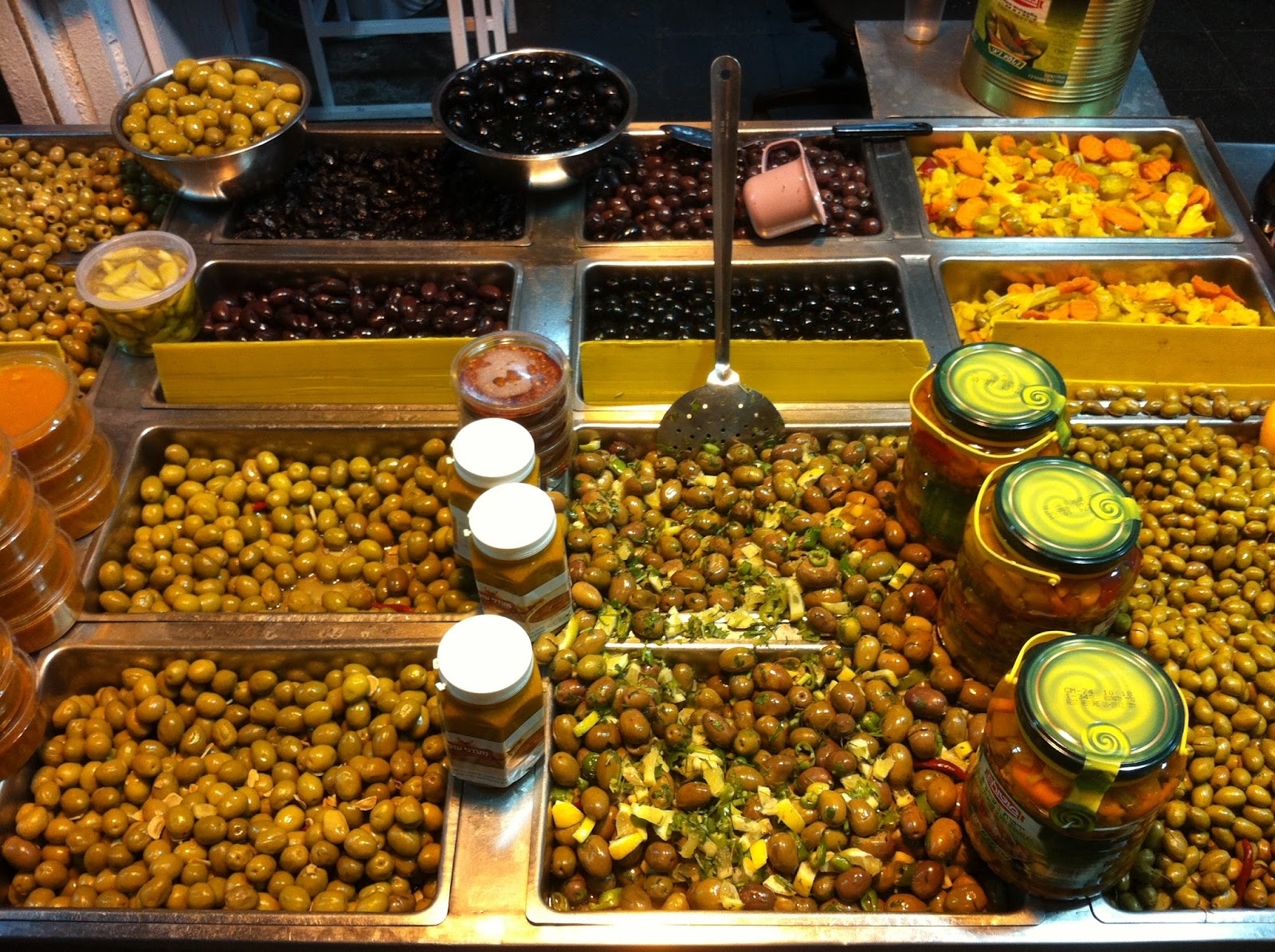 Los encurtidos, ese alimento tan recurrente para ellos. Las aceitunas aparecen hasta en la sopa (bueno, en la sopa no vi ninguna pero sí). Al igual, tienen verduras avinagradas hasta la saciedad, coliflor, tomates y con bien de colorantes.