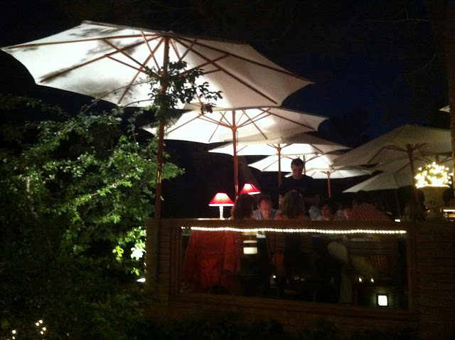 Mucha vegetación, mesas de madera, sombrillas blancas y una luz indirecta. Realmente me recordó a cenar en una cabaña en lo alto de un árbol, ¡qué grande el sitio! Parece que estábamos viviendo nuestra pequeña aventura en lo alto del árbol contando historias de miedo...nos sentíamos como niños.