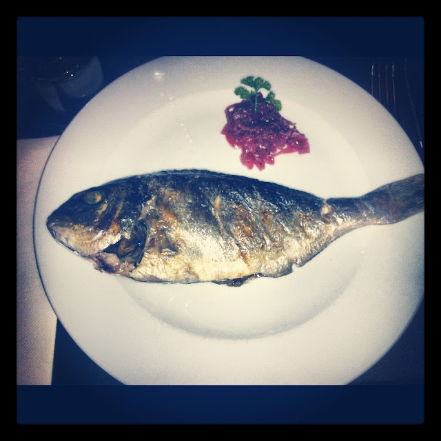 Varios segundos...me decanté por una dorada a la brasa, pocas veces tengo la posibilidad de comer pescado a la brasa (excepto la sardinada que hacemos todos los veranos en Santander). Suave pero sin acompañamiento, sólo una cebolla un poco avinagrada.