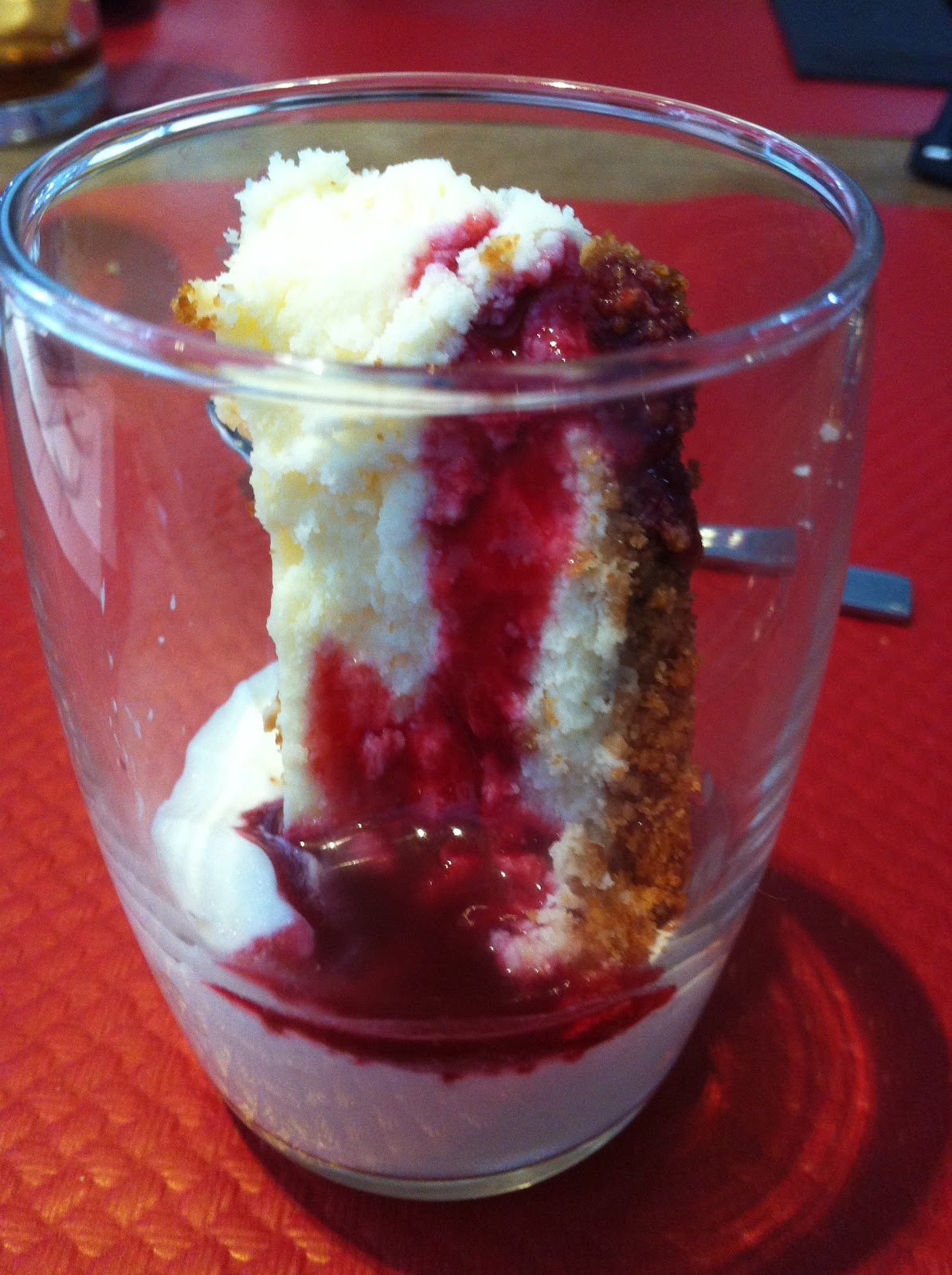 Para rematar una tarta de queso con helado de nada. Curioso el formato en el que venía...aparte estaba buena. Bien por hacer menús de forma diferente y con buenos productos.