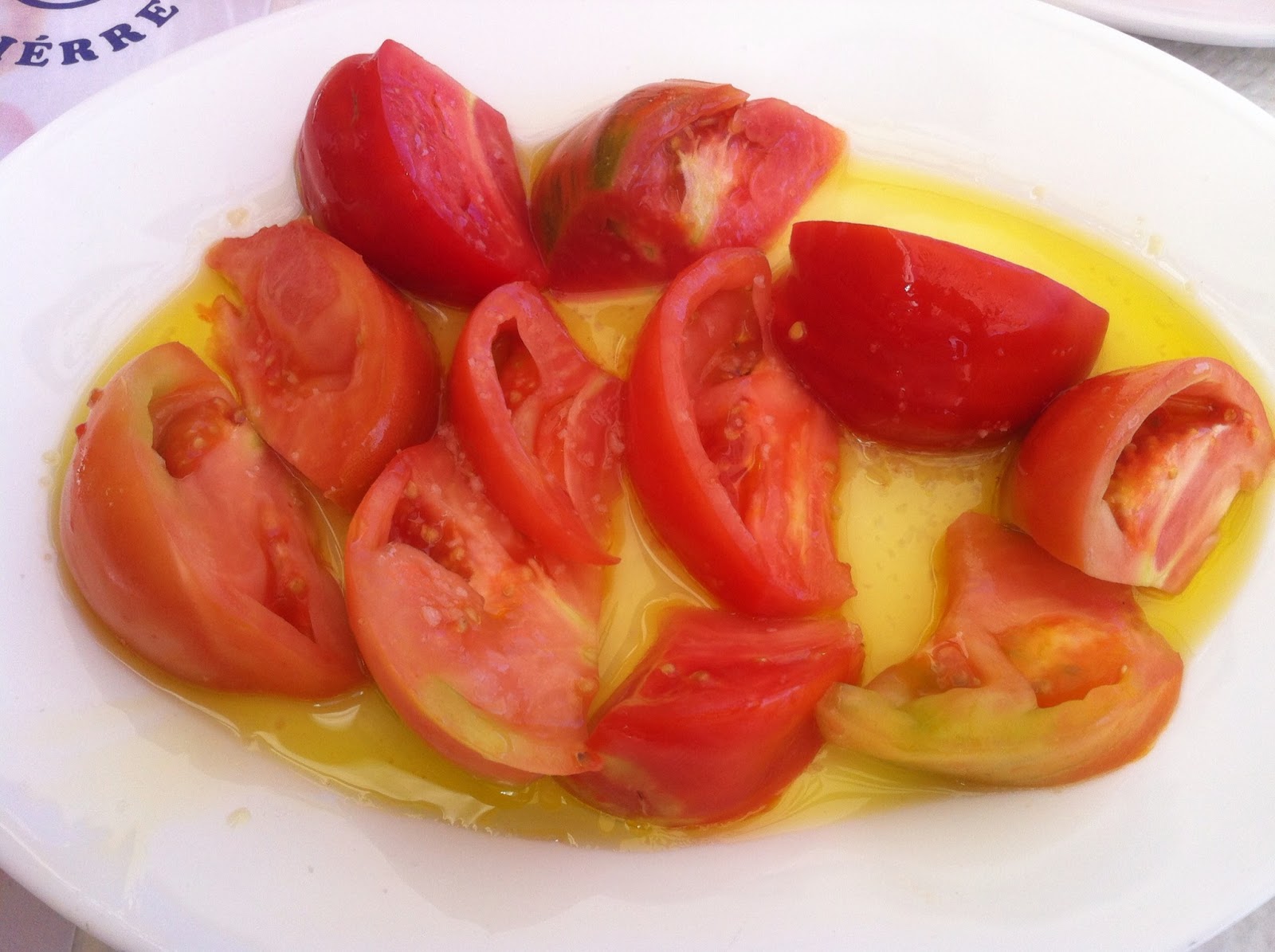 Para acompañar a esta delicia de plato, me pedí un tomate con sal y aceite de oliva típico de la zona. Después de los tomates que llevo tomando este septiembre, pensé que no habría nada mejor, y obviamente no hay nada mejor (jeje) pero estos estaban muy buenos y nada duros.