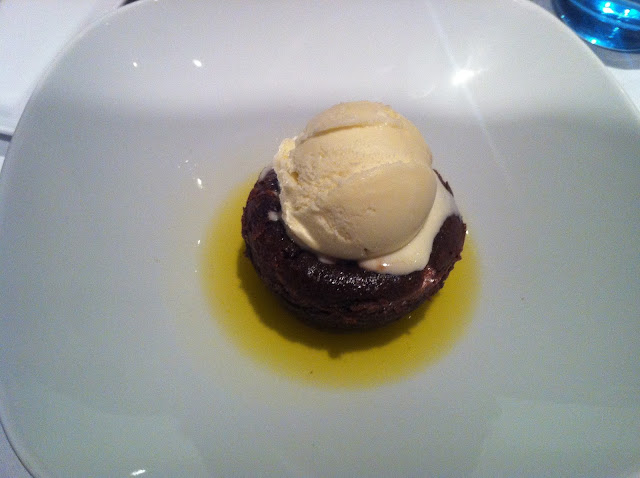 ¡Ajá! Couland de chocolate caliente. A mi que lo único que me gusta es el chocolate, con este postre triunfé, buen acompañamiento el helado frío-calor, pero no para mis dientes, ¡ufff!