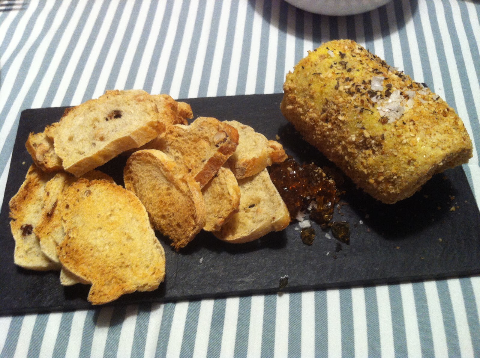 Estaba bueno y consistente y la gelatina de amaretto (un licor) le daba intensidad al foie, más si cabe. Por cierto, lo importante que es la sal maldon en estos casos.