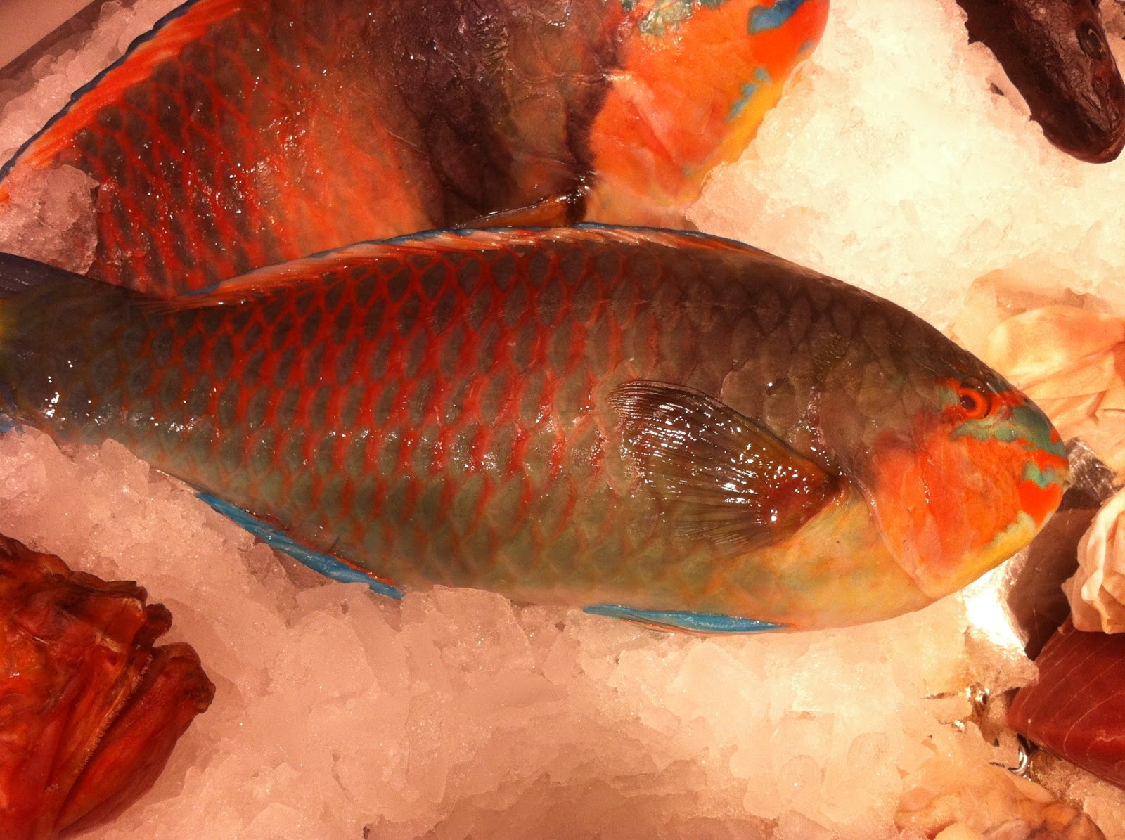 Una vez cogidas todas la fuerzas, cámara en mano recorriendo todos y cada uno de los puestos que allí tienen, y el que busca, encuentra, ¿y yo me encontré? pues mira que el pescado aqui no es abudante, pero me llamó la atención este pececito raro con colores azules fuertes.