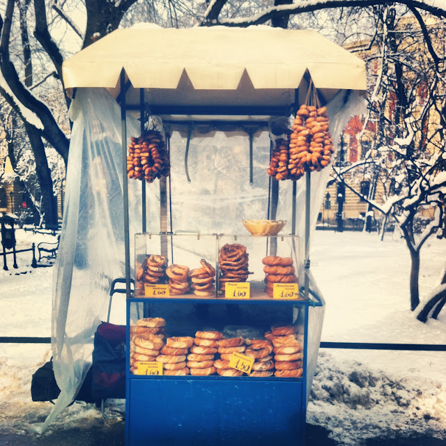 Pretzels y oscypek (una especie de queso de cabra ahumado) era lo más visto por las frías calles de Cracovia. Donde fueres haz lo que vieres ¿no? pues queso de las montañas de Tatras para el niño. Compacto, muy ahumado y pelín empalagoso, pero me lo comí sin rechistar. Mis amigos se limitaron a decir "no gracias, que tampoco es tan grande como para compartir" o lo que es lo mismo, "tu cara nos aconseja que no lo probemos", queda dicho.