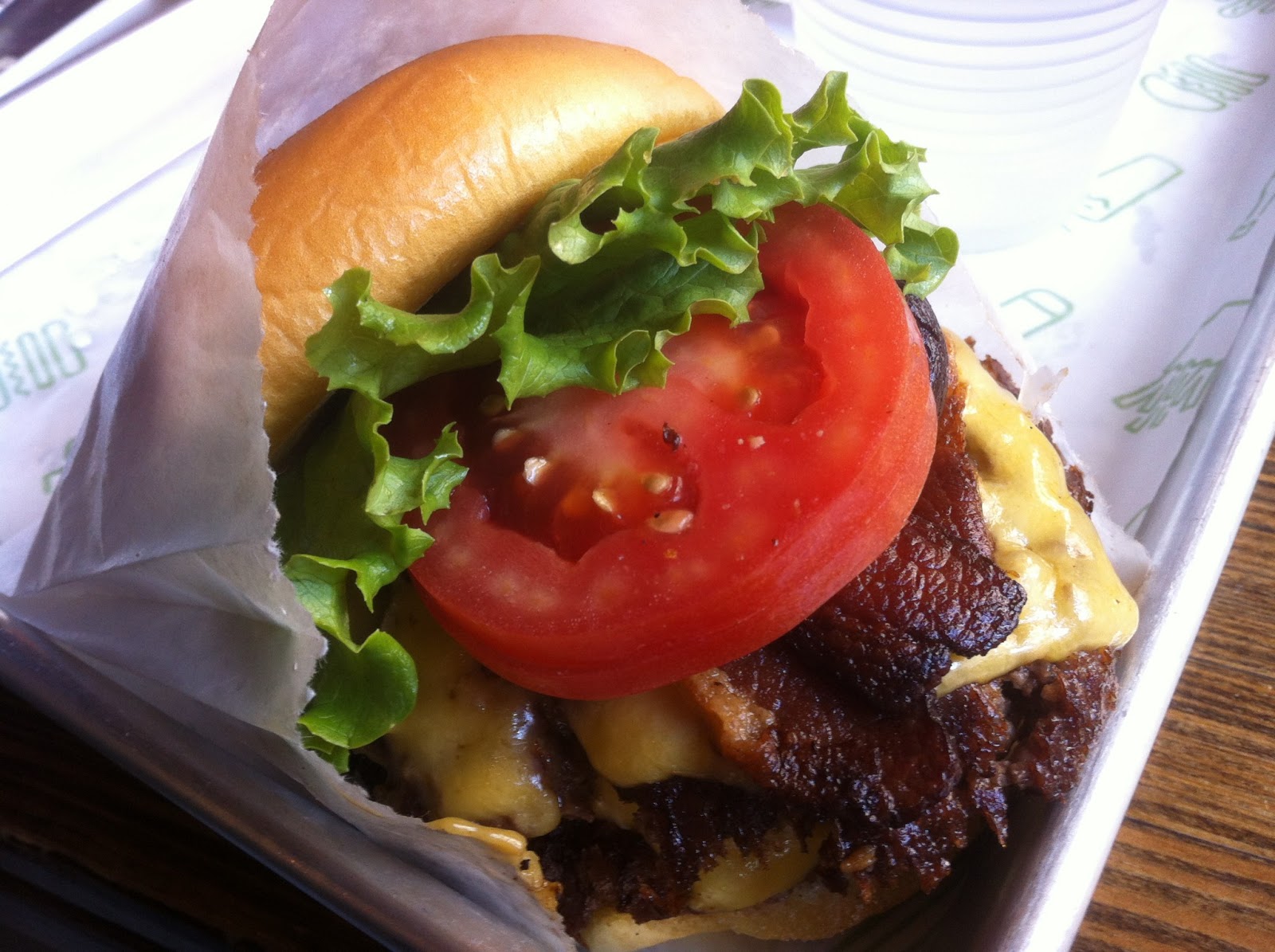 El miércoles después de visitar el Roosevelt Hospital y andar de cabeza con los de administración, quedé con Paula a la carrera para comer porque en unas horas le salia un vuelo para Chicago. ¿Un sitio bueno y rápido? Shake Shacks, donde ponen las mejores hamburguesas de Nueva York y por 9$. Yo me la pedí doble y con extra de todo.