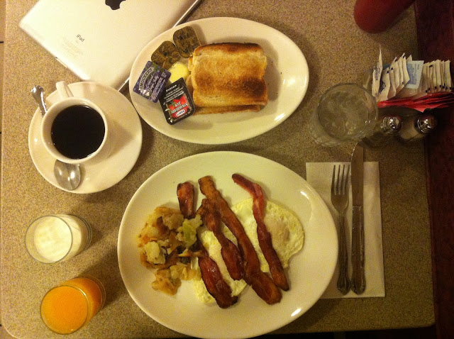 Camino al Upper East Side me paré en la cafetería 3 Guys. Un lugar de andar por casa, pero en el que por 10$ te sirven todo este surtido de desayuno de campeones, huevos con beicon, tostadas, zumo de naranja..., para ser Nueva York, ¡es toda una ganga!