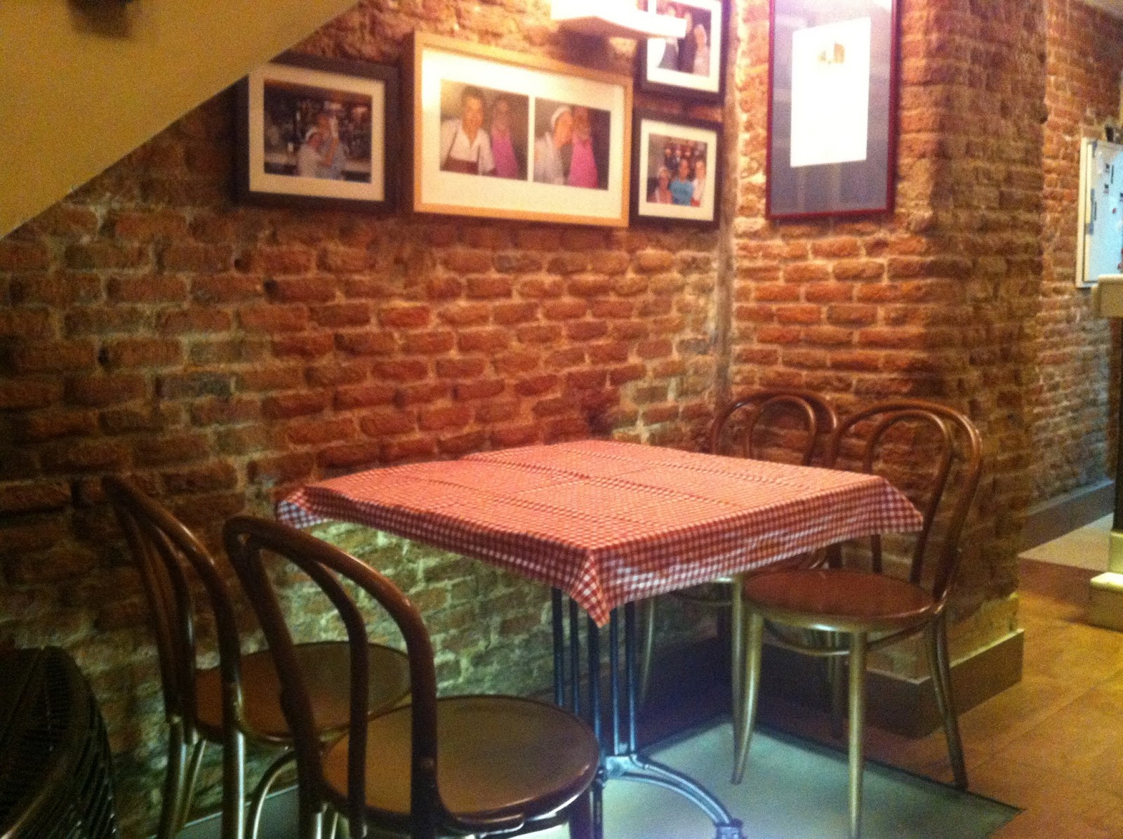 Esos típicos sitios con fotos de famosos en las paredes...no sé si muchas veces causan encanto o repelús, pero sí es verdad que la mayoría de restaurantes que los tienen, se come muy bien, ¿una estética de garantía? Mantel de cuadros, paredes neoyorkinas de ladrillo y techos bajos con buenas vigas de madera.