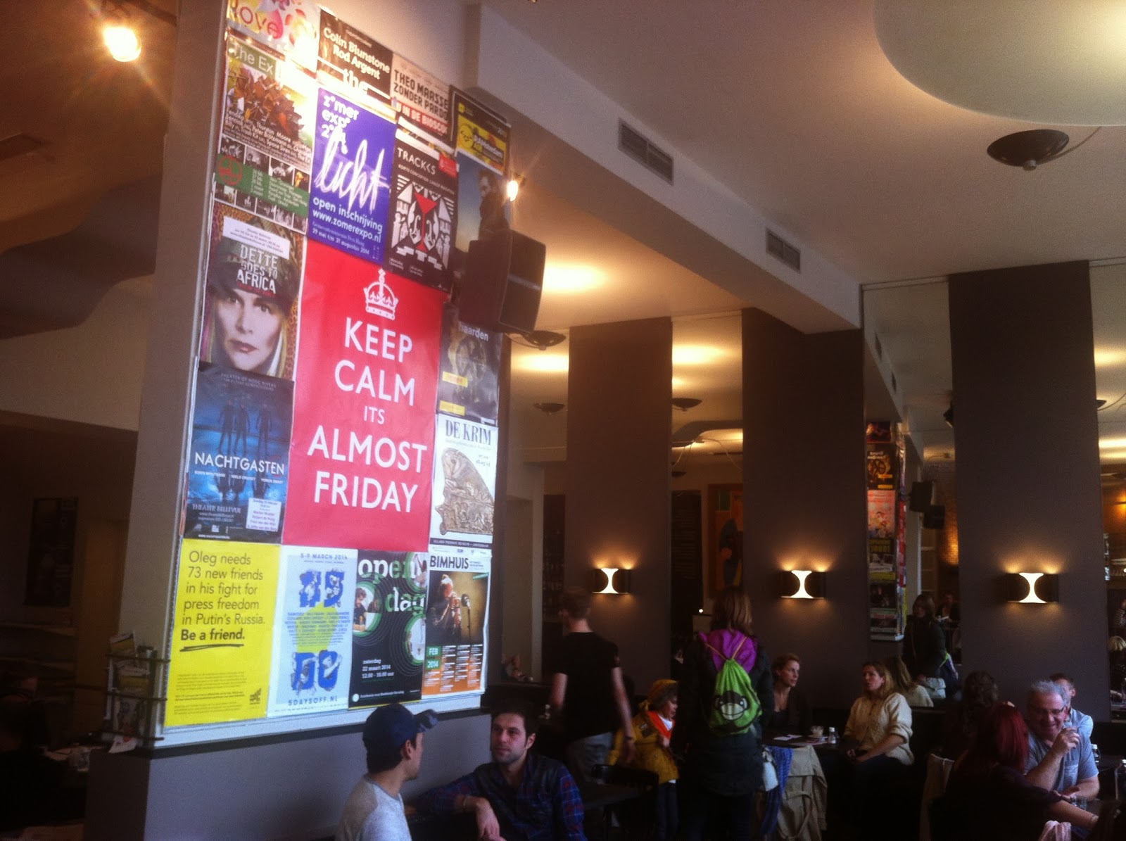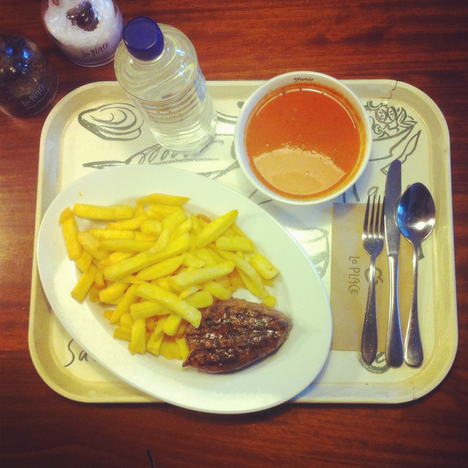 Concretamente sopa es lo que tomé el primer día, sopa (insípida) de tomate, no me gustó un pelo, todo sea dicho de paso. Fuimos hasta La Place, un restaurante/mercado, rollo Mercado de San Antón, donde te coges lo que quieras y tú te gestionas tu alimentación. De segundo un buen solomillo de ternera con patatas, bastante bueno. Ojo a las patatas, que en Ámsterdam es plato típico, si, si, las french fries, ¡para lo que hemos quedado!