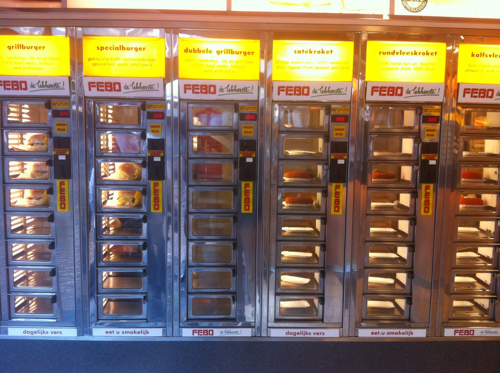 El rey de esto es Febo. Me recuerda a los cajetines de Correos, pero cambiamos cartas por hamburguesas, o las famosas croquetas de patata. Esta bien hacer la gracia y probarlo un día, pero igual la gracia se te quita cuando tengas la croqueta en la garganta a las 2 de la mañana...