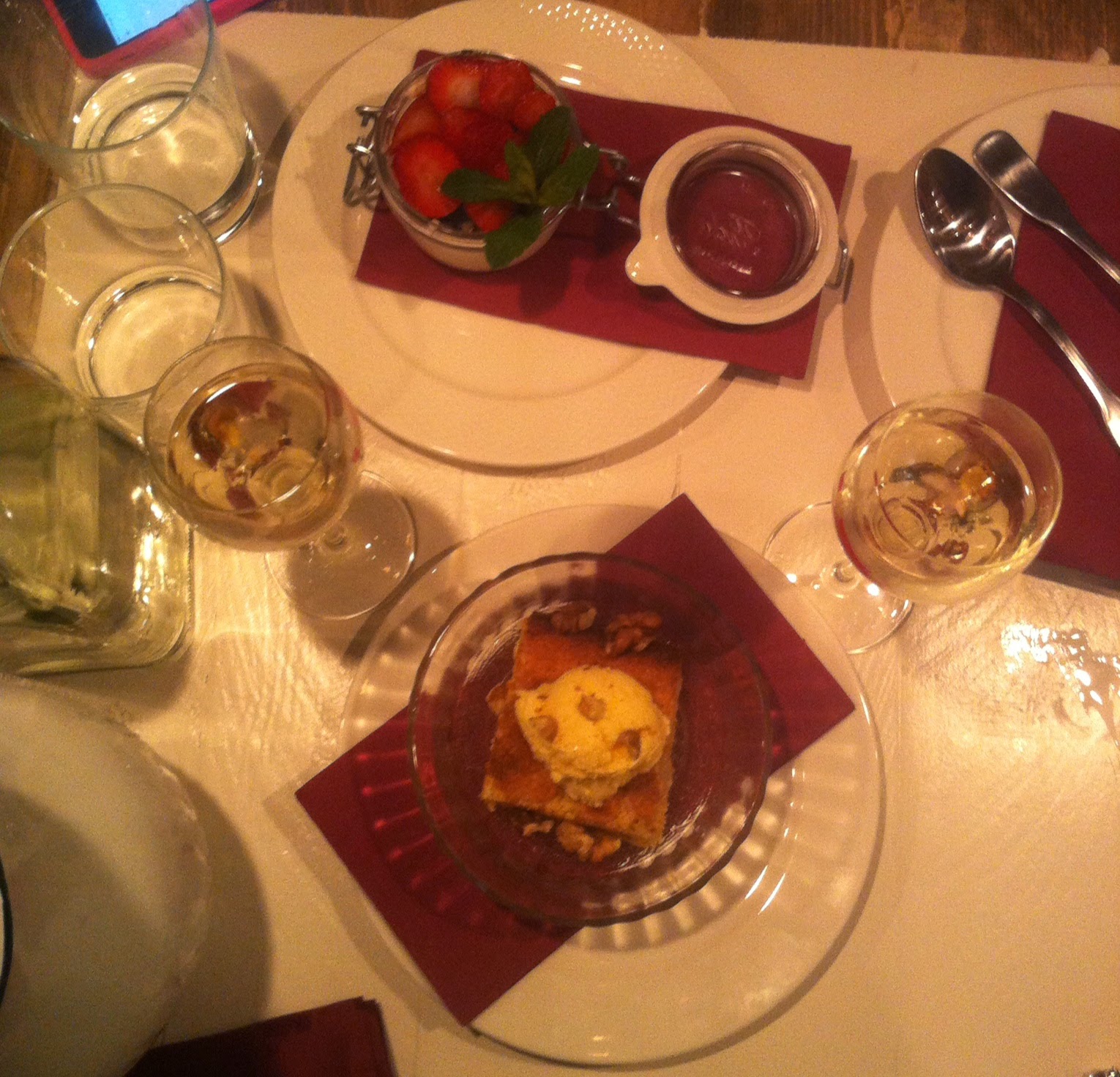 Y la sorpresa continuaba de la mano del postre. Brownie de chocolate blanco, con frutos secos, bien. Y una tarta de oreo, mascarpone y fresas, muy top también. La atención muy buena, rápidos menos para la cuenta. De precio en torno a 20€.