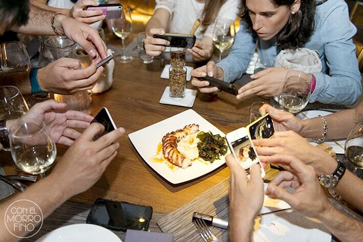 La atención excelente, tanto por el personal como por los chefs con los que pudimos hablar. Agradecer a Con El Morro Fino, por esta divertida foto en la que estábamos todos diciendo, "un pulpo, ¡un pulpo!".
