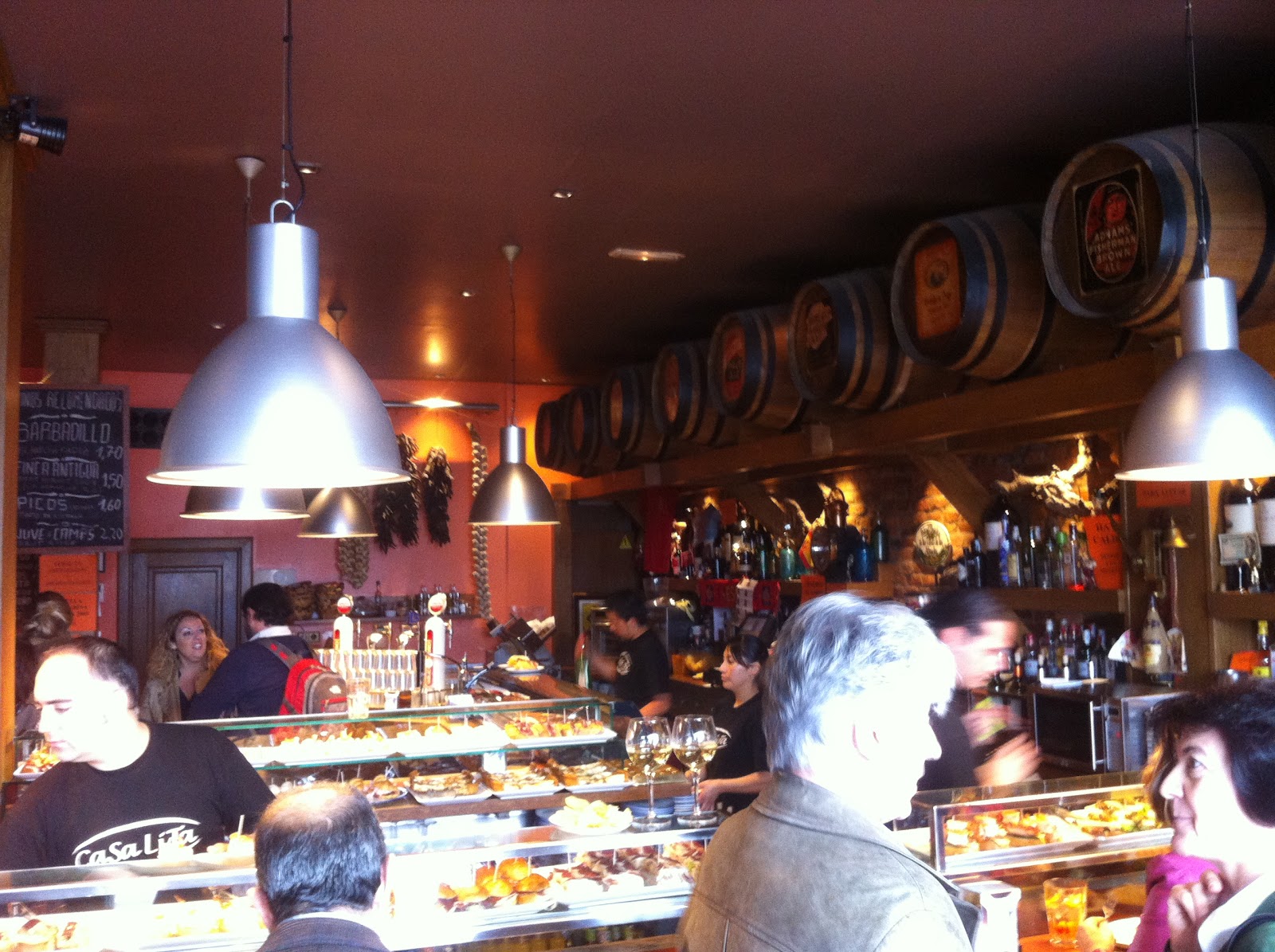Dentro de Casa Lita, te encuentras una taberna de madera, pasada por chapa y pintura y muy adecuada a los tiempos que corren (nota: fíjense en esas lámparas del SXXI). Una barra repleta de tapas que salen cada 5 minutos.