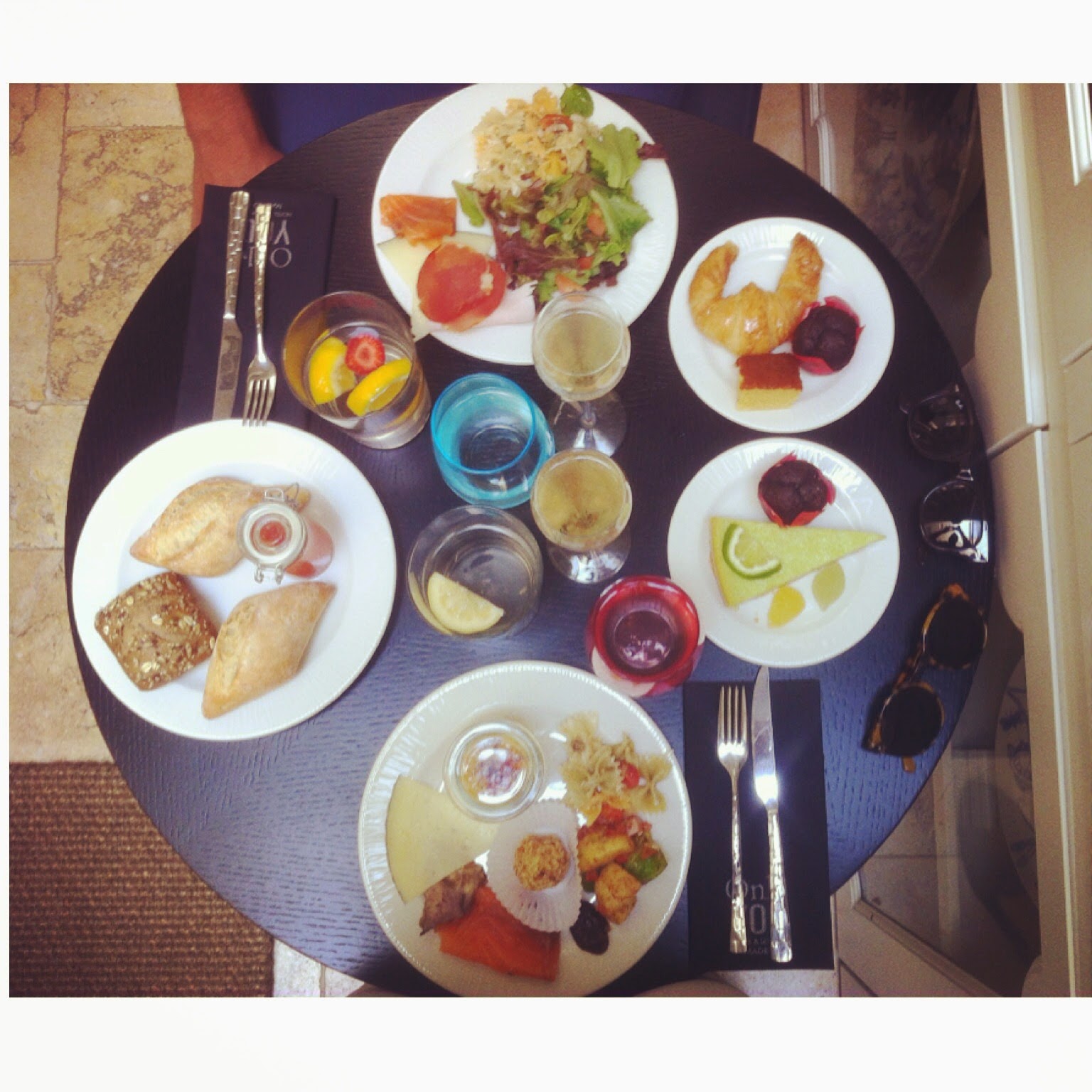 Y a mi en estos casos lo que más me gusta es levantarme una y otra vez, aunque nada más sentarnos una copita de champán, que ya son las 12:30 de la mañana.
