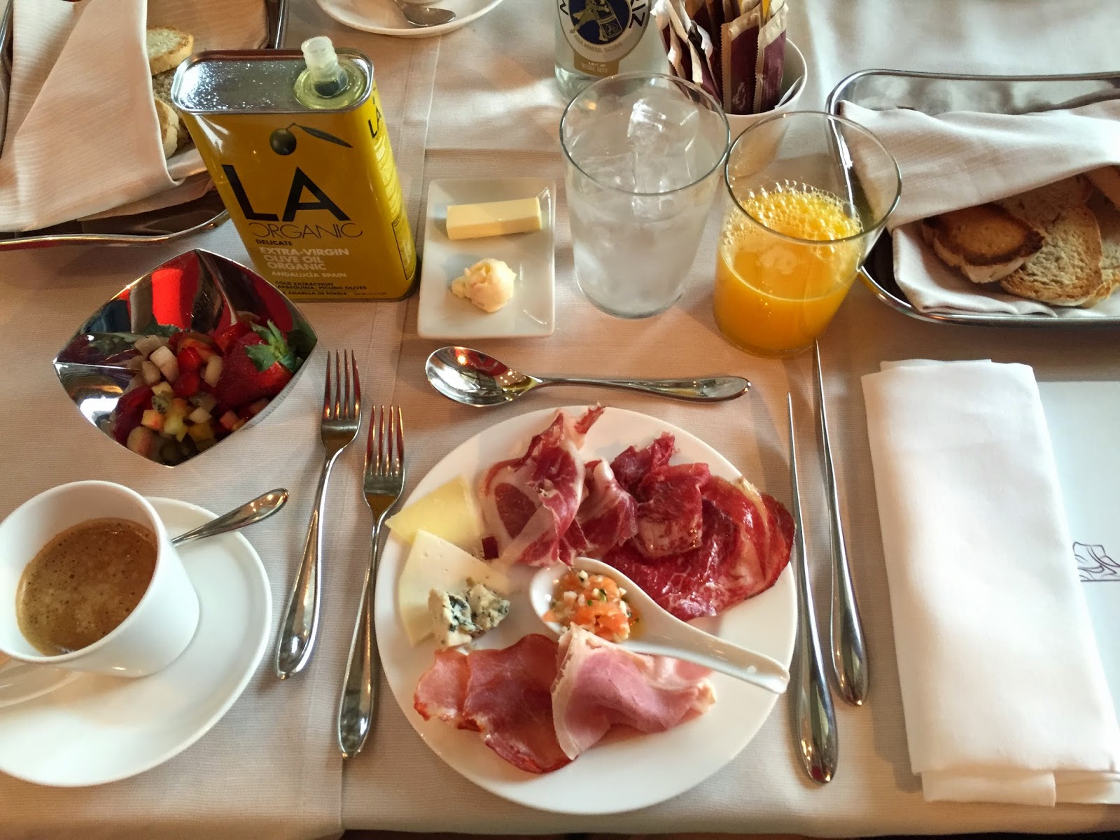 Y como estamos donde estamos, desayunos con productos de la zona. Me llegué a plantear lo de desayunar con una copita de vino tinto, pero me parecía muy heavy así que opté por el zumo de naranja.
