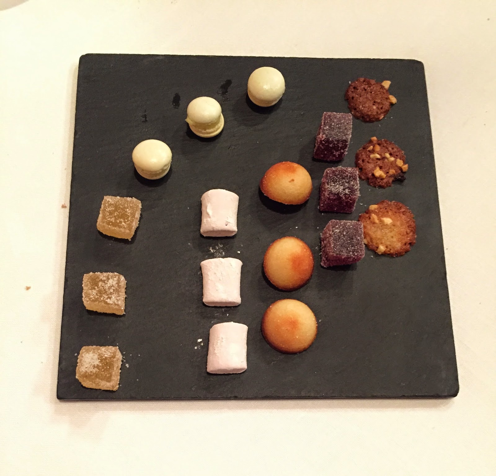 Y para acompañar el té, unos macarróns de aceite de oliva, financiera, marshmallow de vino, teja de almendras, gominolas de tempranillo (acojonantes) y de vino blanco. Unas gominolas aptas para adultos, por favor Francis, ¿dónde las comercializáis?