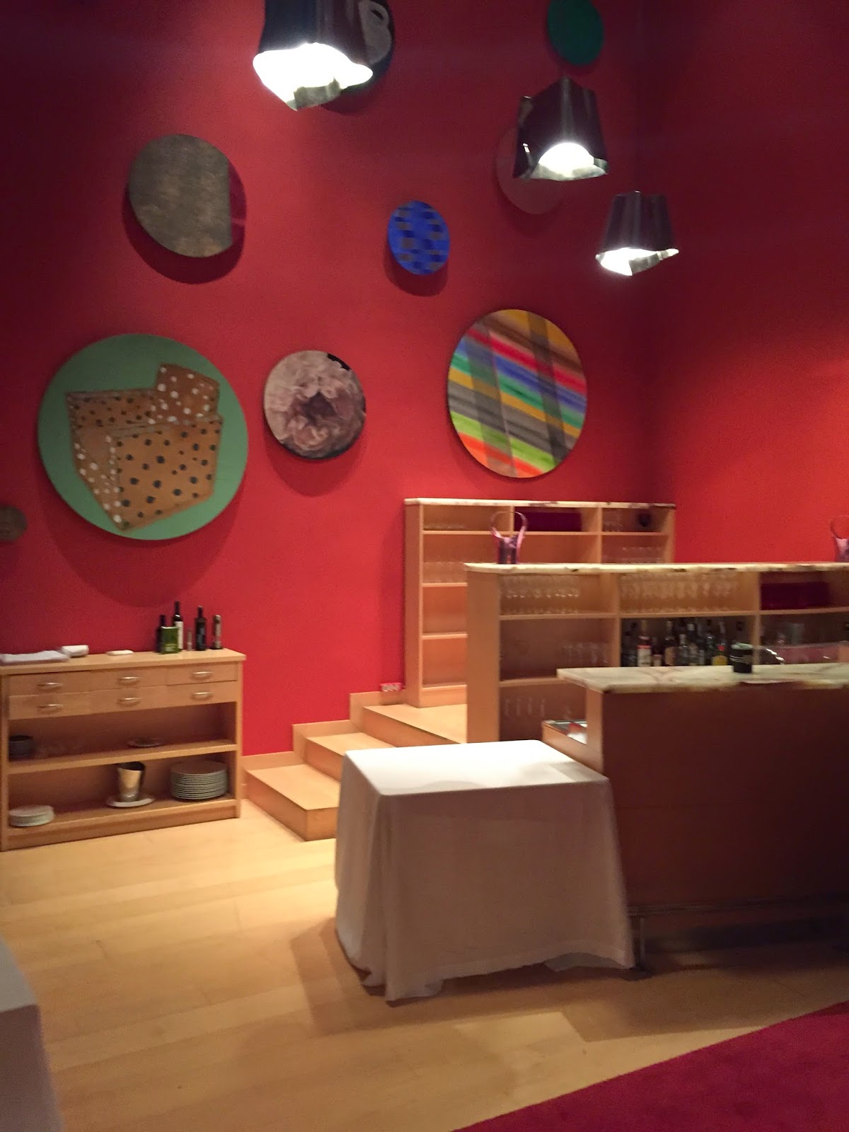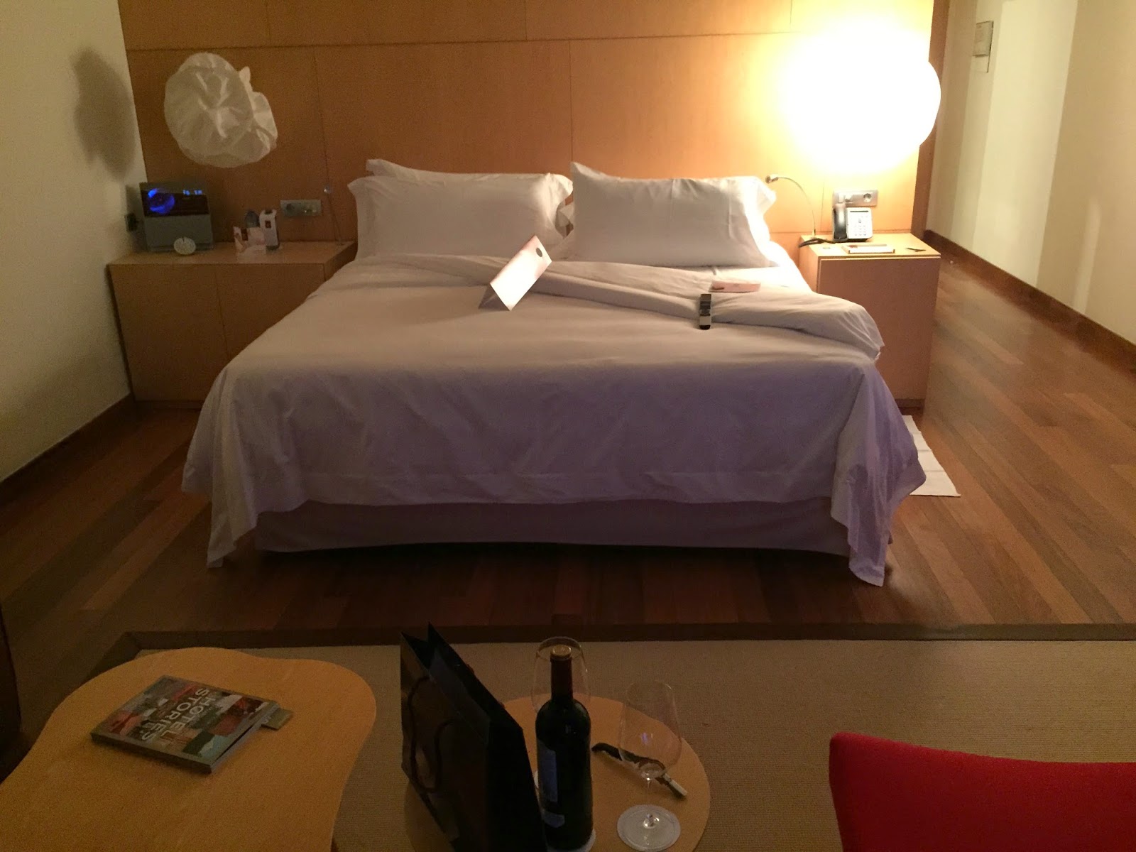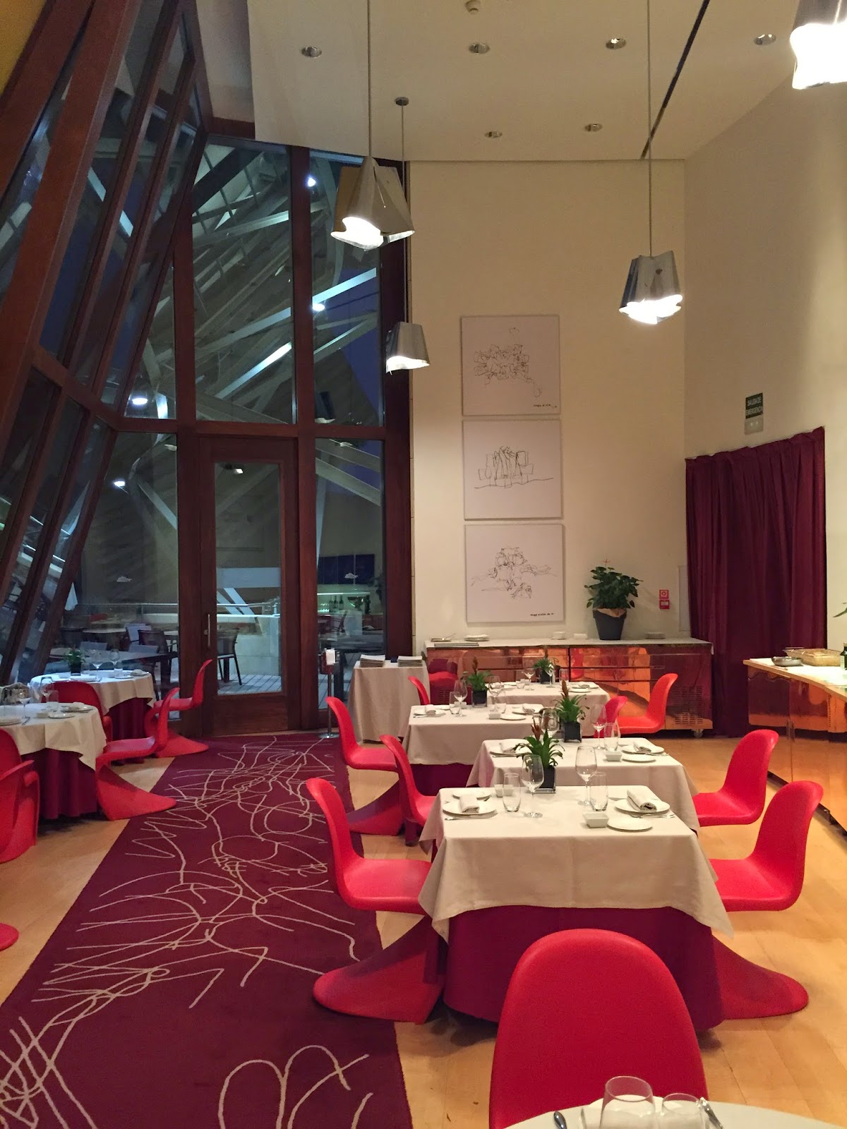 Al día siguiente tenía pensado salir a correr pero la cama infinita me absorbía y no me dejaba salir, aún así desayuno de campeones. Dibujos de Frank Gehry en el comedor, y un rojo y blanco la mar de animado para empezar el día.