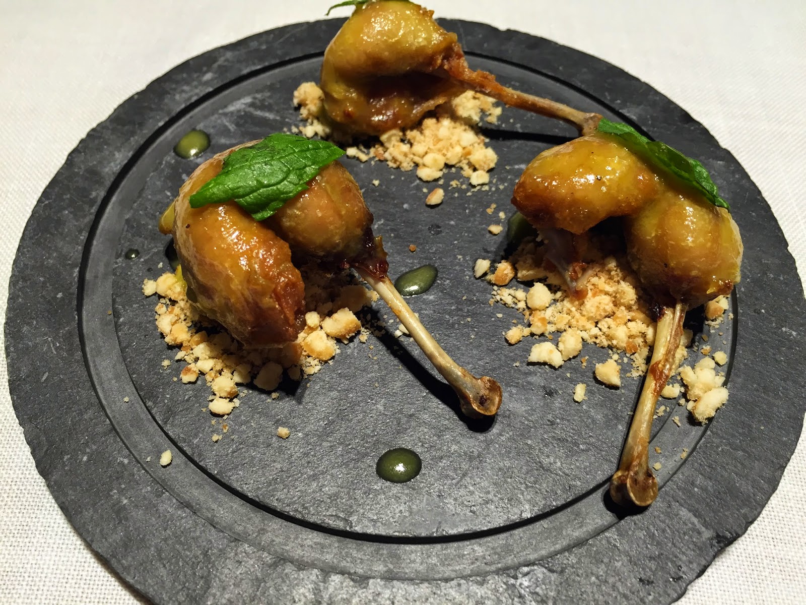 Y si eso nos había parecido muy común, continuamos con unos muslitos de perdiz con frutos secos. Atención a los frutos secos porque en muchos platos nos los encontramos. Desde el punto de vista nutricional es un aplauso para el cocinero/chef/el que corta el bacalao.