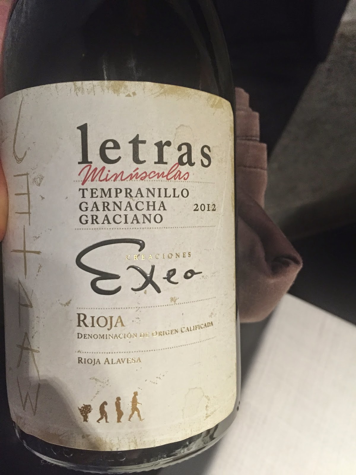 Fran nos recomendó continuar con Rioja pero una línea más joven procedente de una bodega como es Exeo, el Letras Minúsculas se postula como un vino moderno y fresco y ¡qué coño!, bastante bueno (con perdón por la grosería).