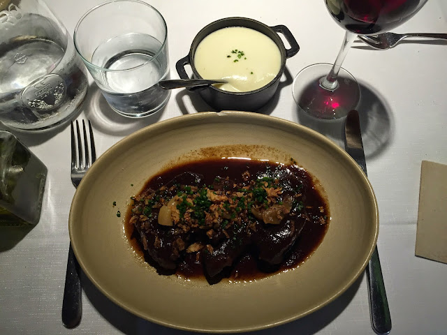 Y sí, aquí uno que es de buen comer, se pidió carrilleras de segundo. Una carrillera glaseada que de textura estaba buena pero de sabor pelín dulce para mi gusto. Fallo mío el pedirlas cuando sabía que venían glaseadas, aún así buena carne.