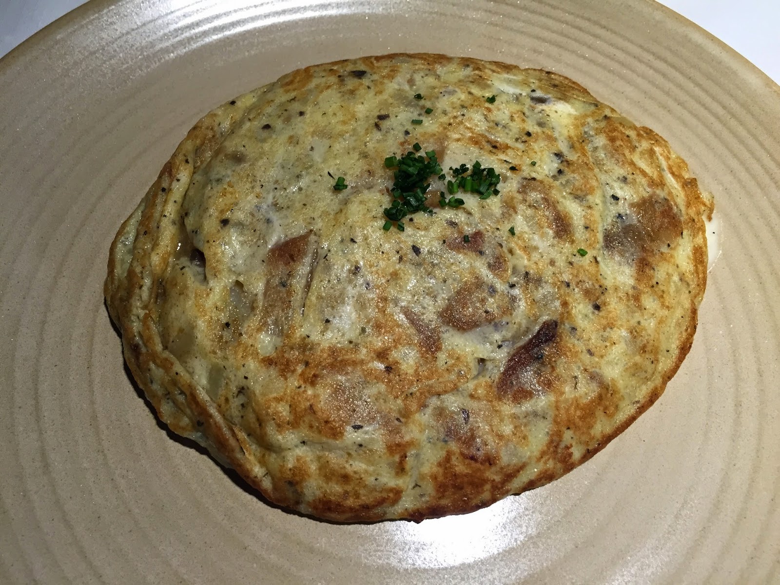 Continuamos con una tortilla (que es lo que hemos venido aquí a probar). Esta concretamente era trufada, pero con trufa de verdad, no con "aroma de". Las hacen poco hechas característica que a mi me encanta, al igual que la patata, que no tiene que ser dulzona para que no mate el resto de sabores.
