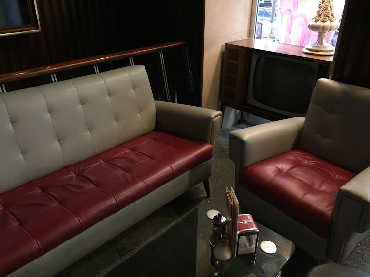 Por dentro de encuentras un local de los años 70, con sus sofás de skay, madera oscura y mucho dorado. Mesas pesadas de mármol, una radio antigua y una gran barra de latón de las que ya no se ve...¡ahí es donde me tomé el Colacao! No veía otra cosa que pedir en un sitio como ese y a altas horas. Lo sé, es una bizarrada pero me encantó.