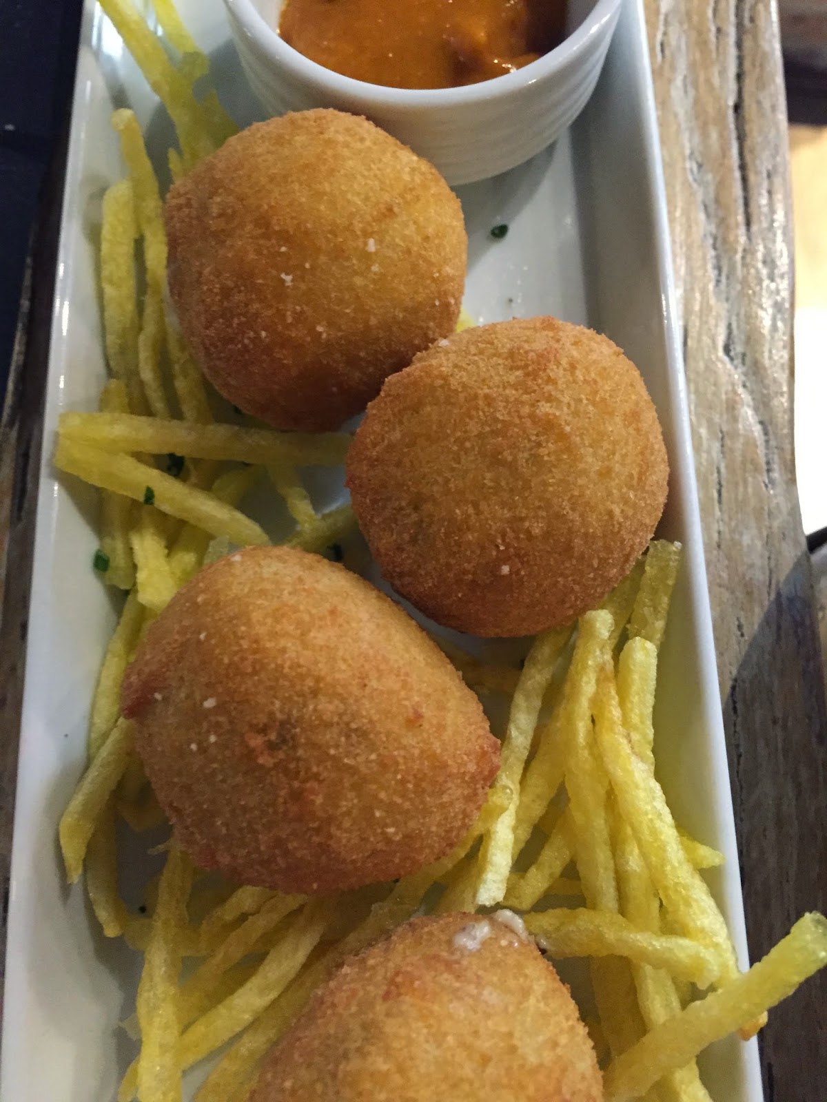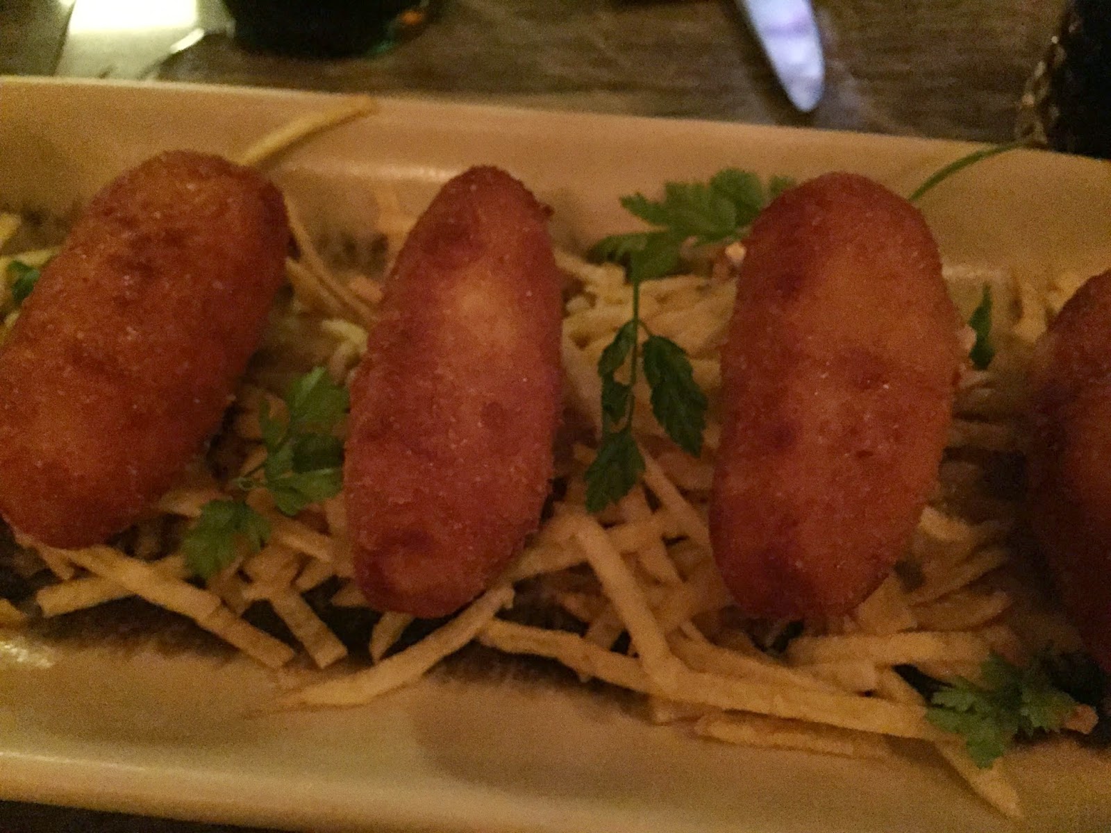 Croquetas de jamón ibérico y trufa con boletus. Le faltó un pelín más de calor al rebozado, aún así muy buenas de sabor.