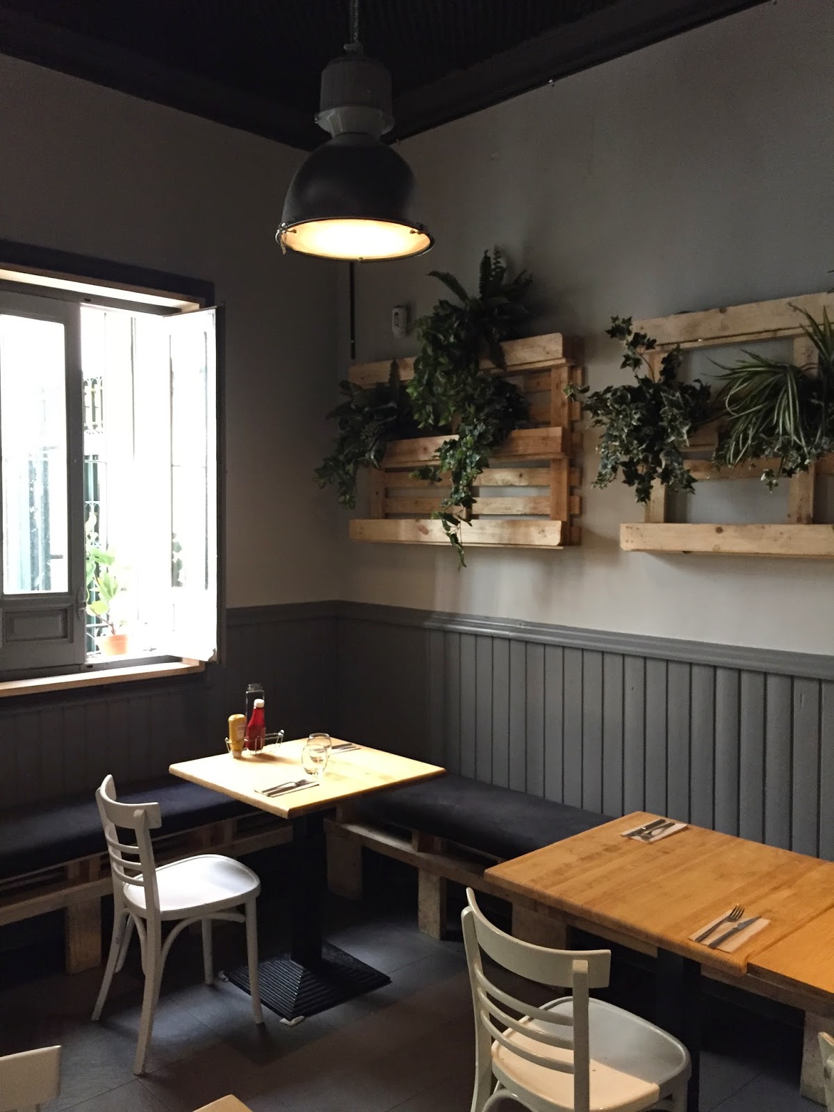 Por dentro te encuentras un lugar plagado de madera y palés con lámparas de submarino que tanto me gustan, un rollo desenfadado y sin pretensiones, y mira que estamos en un sitio apto para gente de la Alta Burgersía.