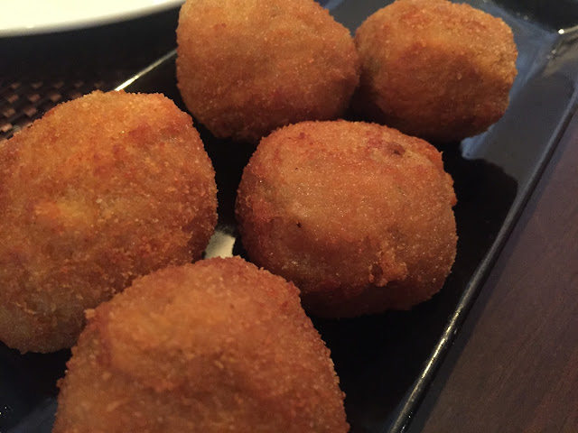 Las hamburguesas no sé como serán, pero los entrantes como las pakoras (unas tortitas de verduras al estilo hindú) son algo delicioso, y las croquetas de trufa...estaban buenas, porque la bechamel estaba en su punto pero a trufa no sabían prácticamente.