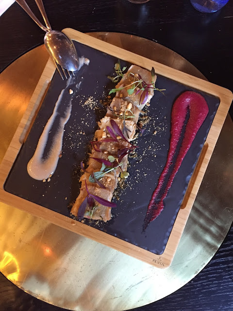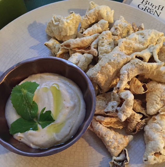 ¿QUÉ? Como obligatorio, pediros unas bebidas a base de jengibre, lima, apio, piña o cualquier otra fruta o verdura. Continuad con unas ostras que no son ostras (ahí lo dejo), cortezas de bacalao (y no de cerdo) la mar de sabrosas con un "hummus" que hacen ellos que puede ser la perdición para los crudités. Un ceviche (corvina en mi caso aunque no siempre es el mismo) con trozos de manzana también puede estar bien.