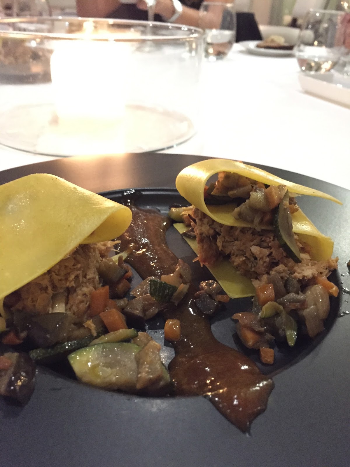 Continuamos con unos tortelloni rellenos de foie (madre mía que sabor), y trufa...el olor ya era de llorar. Si me algo me sorprendió es la contundencia de los platos.