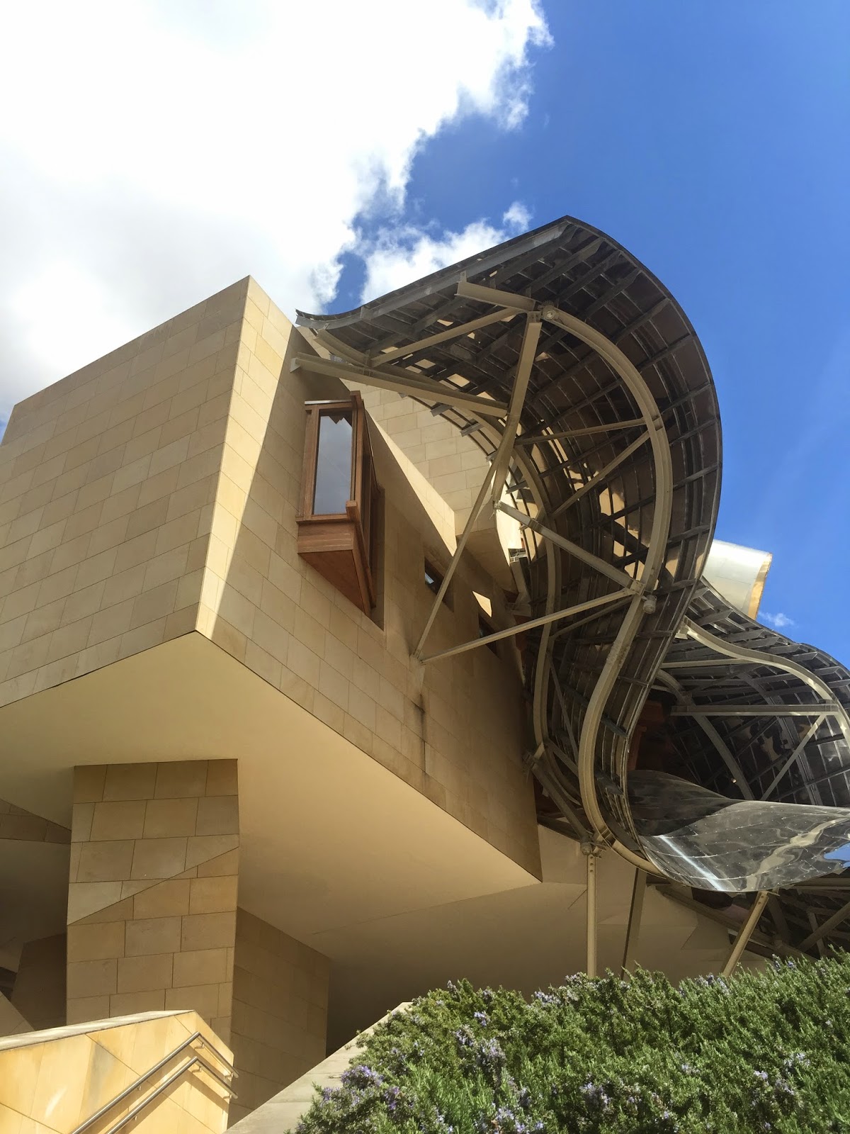 Por fuera parece una construcción de Lego pero a lo bestia. Es impresionante, es fuerte, y majestuosa. Imponente y a la vez tranquila, ondas, ondas y más ondas con un pequeño lago en la parte delantera que cuando hace sol refleja toda la estructura. Y si ves Ysios desde el cielo, simula una gigantesca copa de vino.
