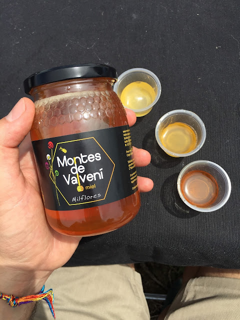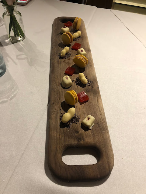 Si sois golosos, como si no, pre postre, postre y post postre. Anisado, ácido (la bola roja) y picante, continuando con una especie de mousse de chocolate, cerveza al cacao, miel y trufa. Y en la tabla, gelatinas de naranja, macarons de mandarina, cacahuetes de chocolate, y dados de plátano. Tras los postres unas grúas nos llevaron de vuelta a nuestras habitaciones.
