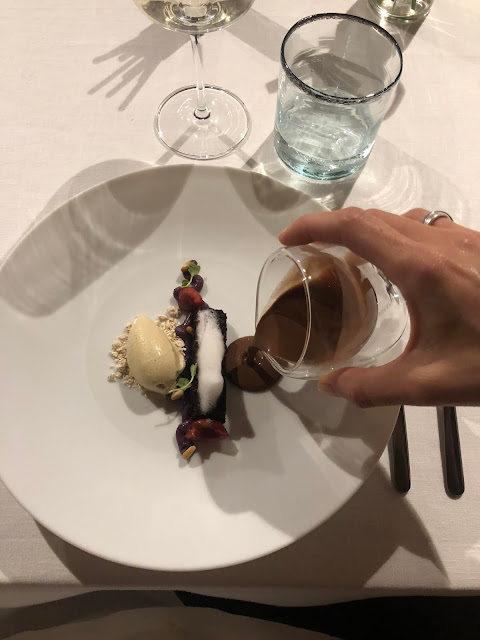 Por la noche, ¡plato fuerte! Cena en Bala Roja de la mano del estrella Michelín Andreu Genestra y maridada de los dedos (madre mía como los maneja) de Andreu Genestar. No son hermanos ni nada que se les parezca más allá de lo que hacen, pero si, la posición de la "erre" les ha unido en este mundo.