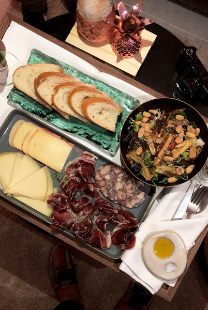 Miren (gracias una vez más), sin poder pararme a saludar, me encargó una cena de lo más completa a altas horas. No me da no sé que molestar a la gente del hotel o de cocina a esas horas porque considero que la gente tiene que descansar, pero he de decir que se agradece. Con el jamón y el cóctel en la mano, no podía tener mejor acogida.