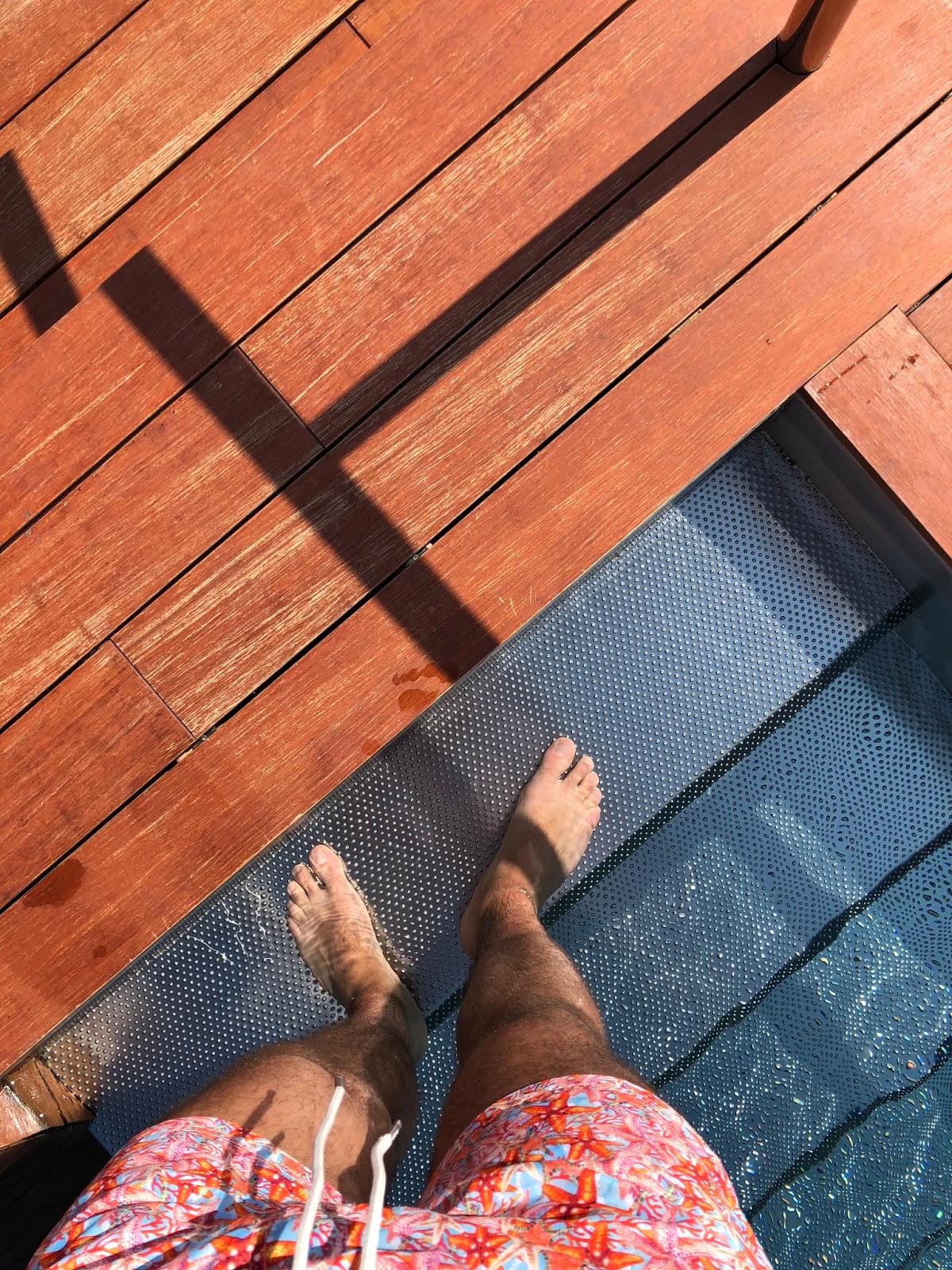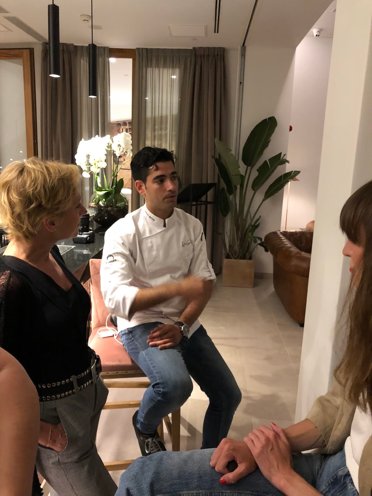 Comimos en la azotea, comida infomal en Mura a base de unos cruasanes de gamba muy apetecibles, unas puntillitas que se comían como pipas, unos sandwiches de trufa muy top, carpaccio de gamba, rape con crema...un surtido para compartir entre 4 personas en la música y el agua de fondo. Tras la comida, vuelta y vuelta al sol y un poco de siesta que lo de vivir en el paraiso agota. Por cierto, conocer en los postres a la dueña, Isabel, ha sido una de las cosas más atómicas que me ha pasado últimamente. Una tía natural (sí, digo tía porque sé que ella me lo permitirá), auténtica, agradable, entregada, pasional con lo que ha construido y lo que hace...gracias por invitarme a tu casa y lo mejor de todo, sentirme como en ella.