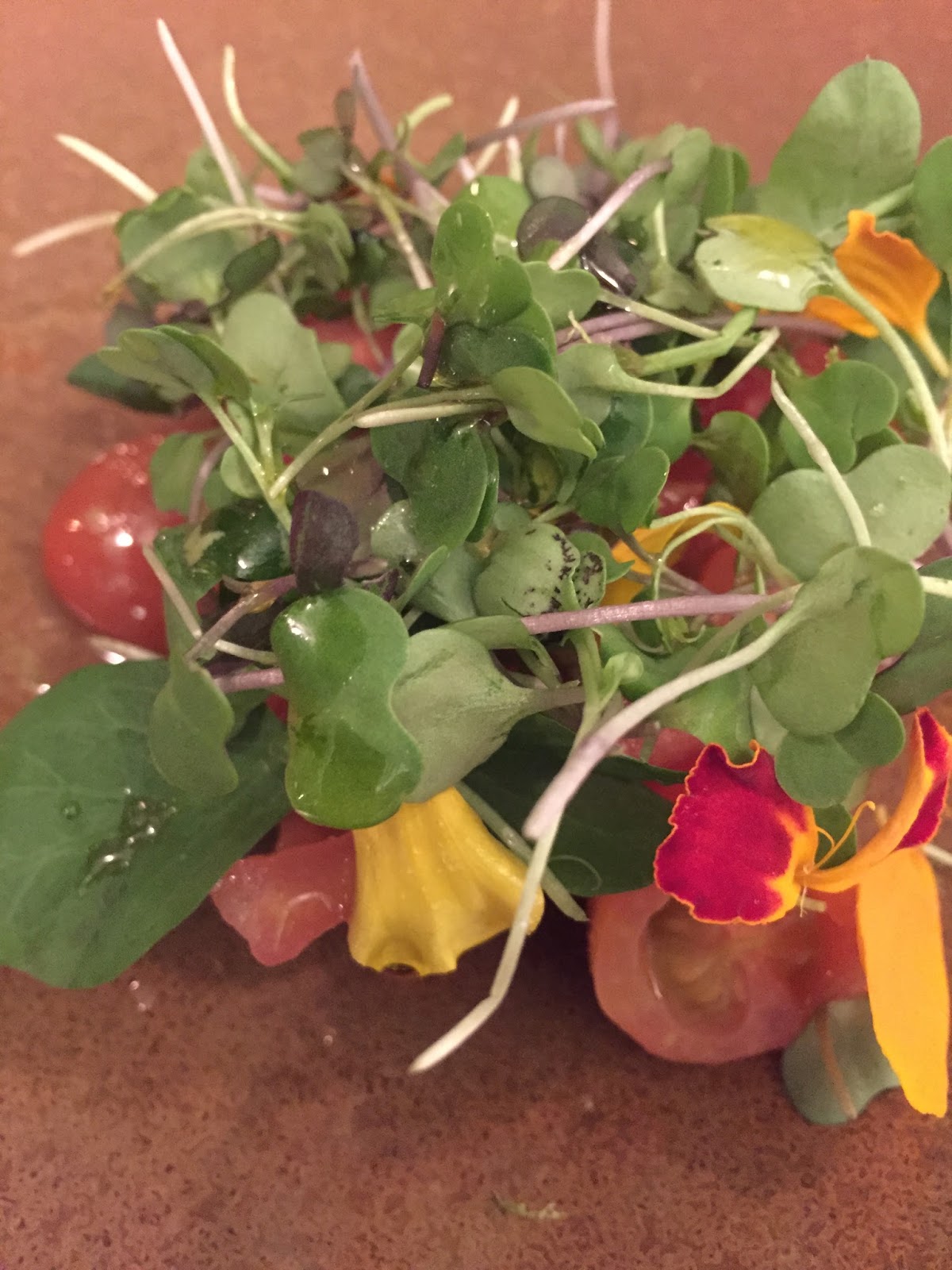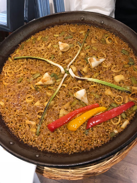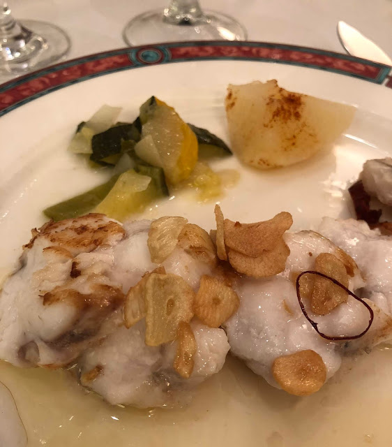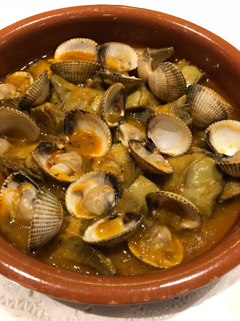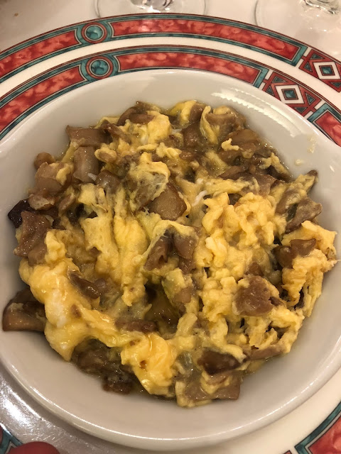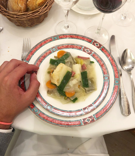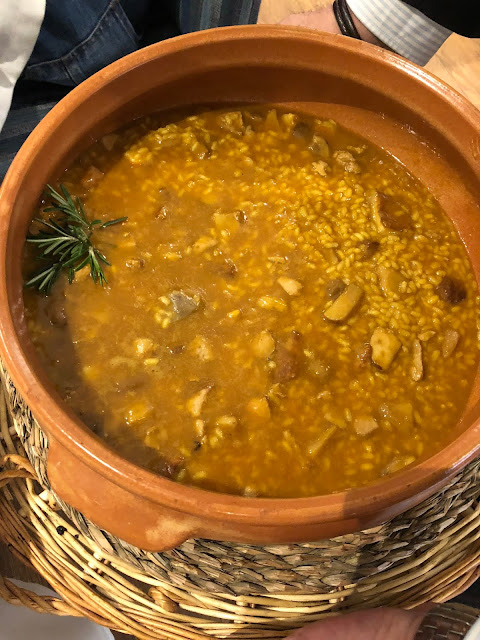 Productos de Navarra, productos de primera, verduras de primera y sino un ojo a esta menestra. Como nutricionista incido mucho en que mis pacientes alegren su vista y su paladar con verduras, pero de buena calidad (no hace falta liarse la manta a la cabeza con BIO, ECO...y demás). Buena alcachofa, buen repollo, buena zanahoria, una explosión de vitaminas y minerales. También tomamos un revuelto de setas, muy jugosas y carnosas.