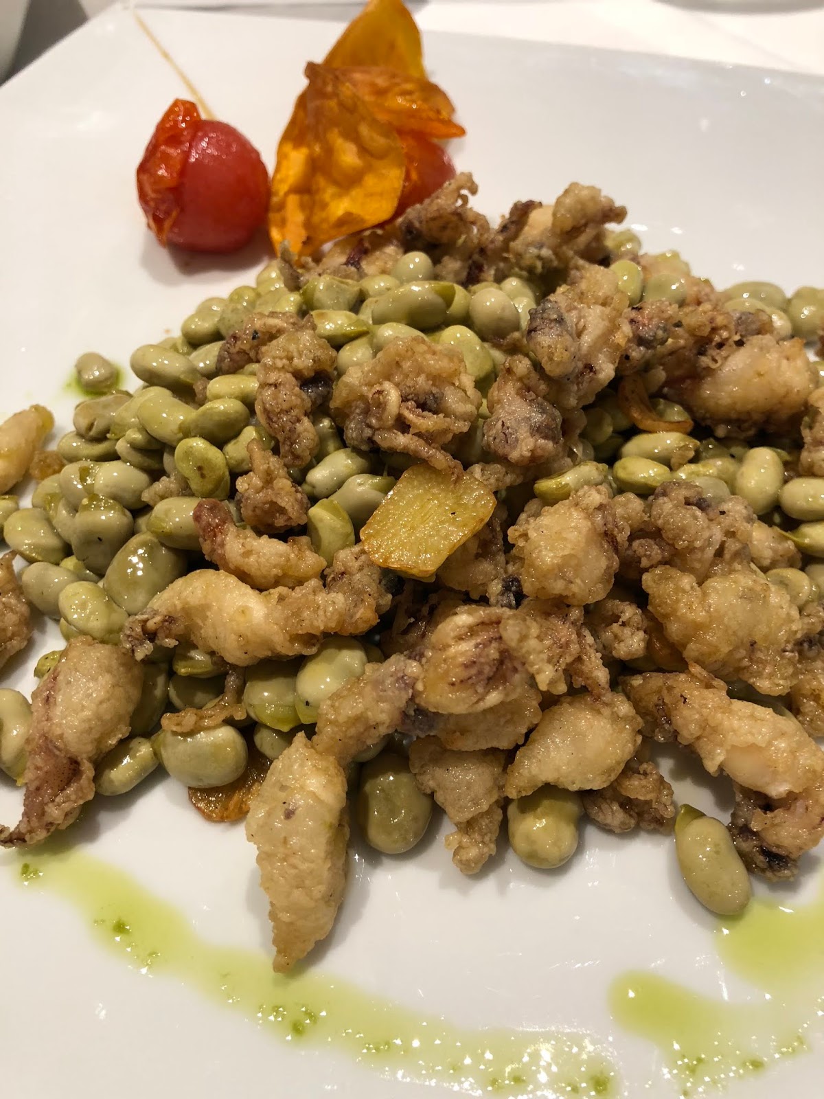 El pescado en el norte siempre suele ser plato fuerte (la carne la dejamos para mi tierra jajaja). Un rape a la bilbaína. Con su ajito frito, con su patata con pimentón (que poco usan en los restaurantes el pimentón, quizás porque en Zamora abusamos de él), su judía pochada, bravo por este plato. Y casi antes del postre, albóndigas de la casa, con una carne de primera y una salsa gelatinosa y muy sabrosa.