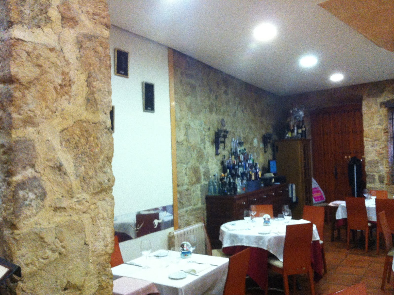 Por dentro es igual que por fuera pero con sillas cómodas y una buena cubertería, pero eso sí, la piedra sigue estando como plato fuerte.