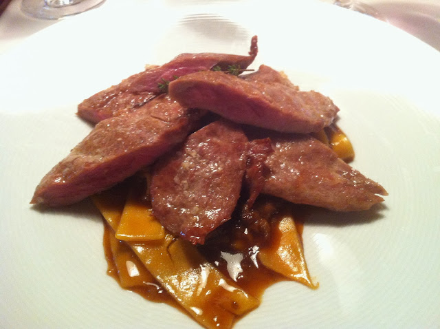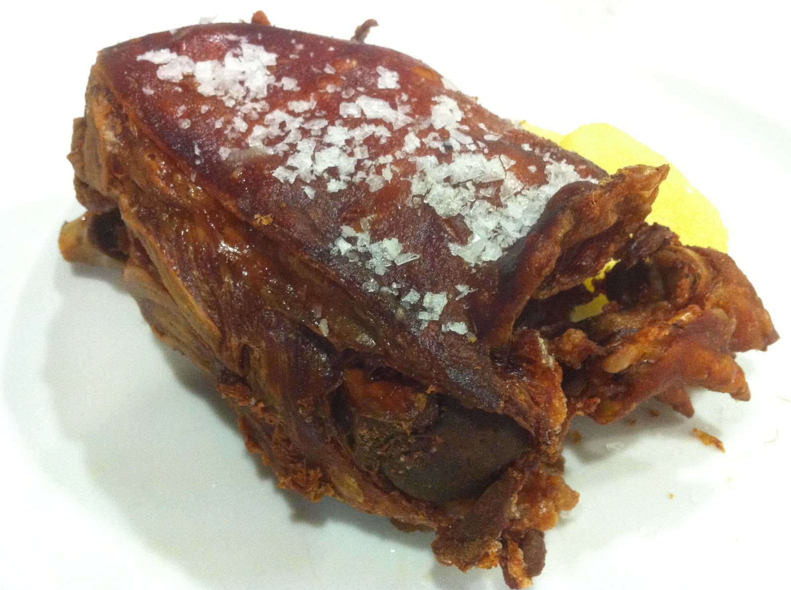 4.- Setas con pularda. Buenísimo, con ese puntito avinagrado que tanto me gusta, unas setas oscuras muy carnosas que iban muy bien con la pularda y su textura más fibrosa.